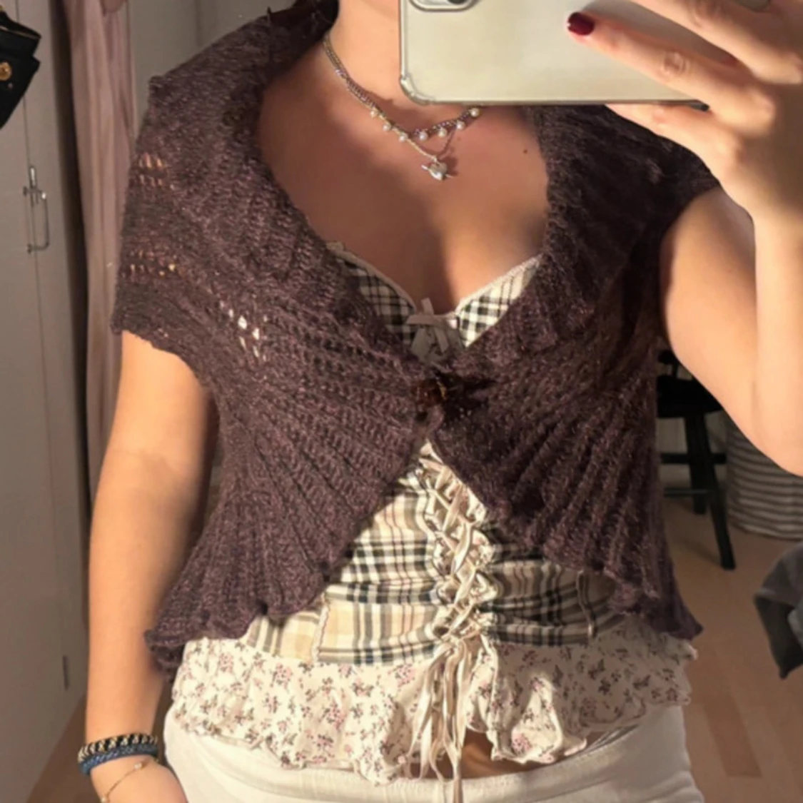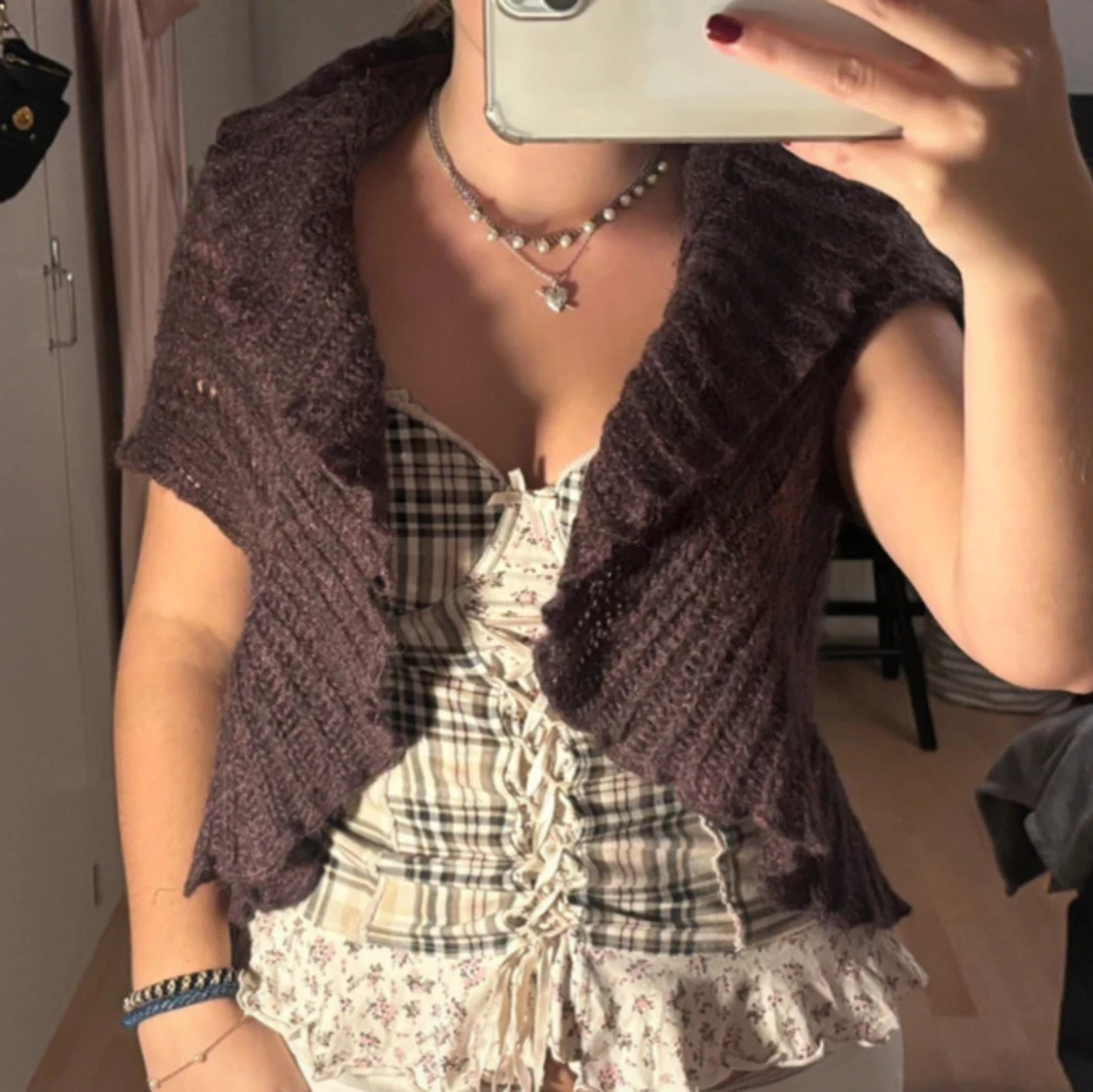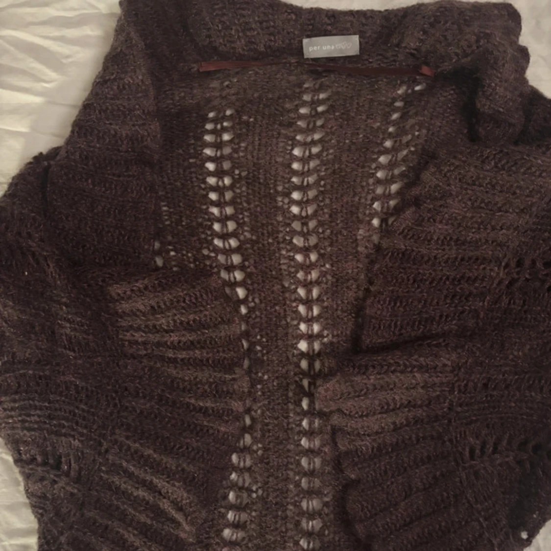 En brun/lila stickad bolero, aldrig använd nyskick! Pris kan diskuteras