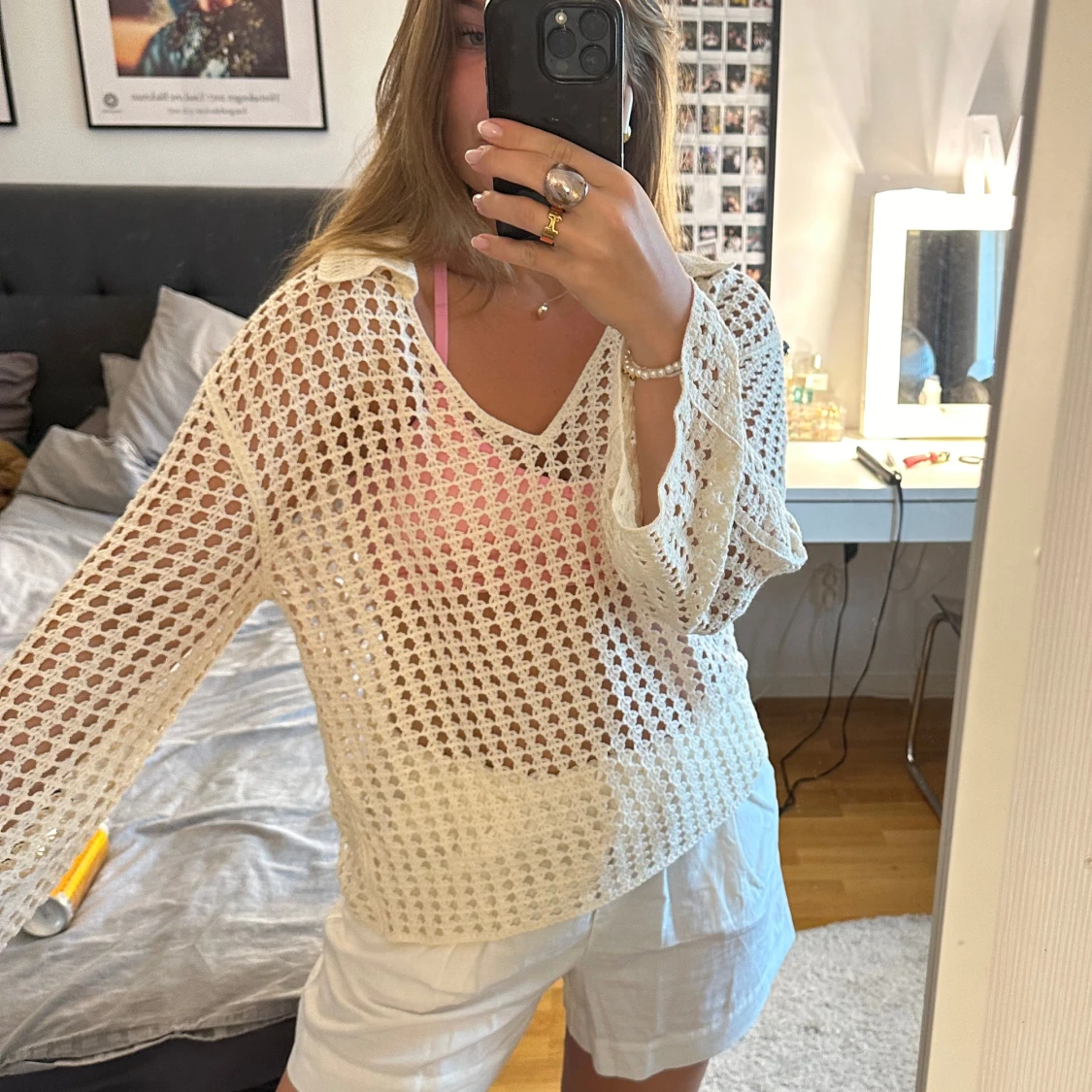 Säljer denna fina hålvirkade toppen! Passar perfekt över en bikini som på bilden eller över ett linne eller klänning. Tog av lappen men sen har jag dessvärre aldrig använt den tyvärr. Den är otroligt fin och i nyskick! 💘🦋