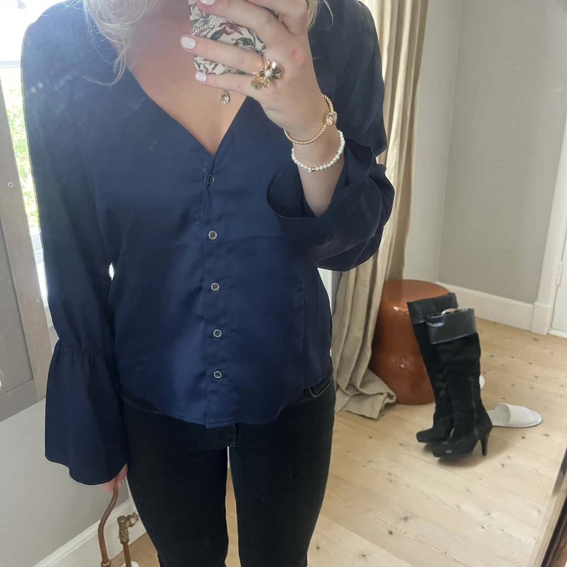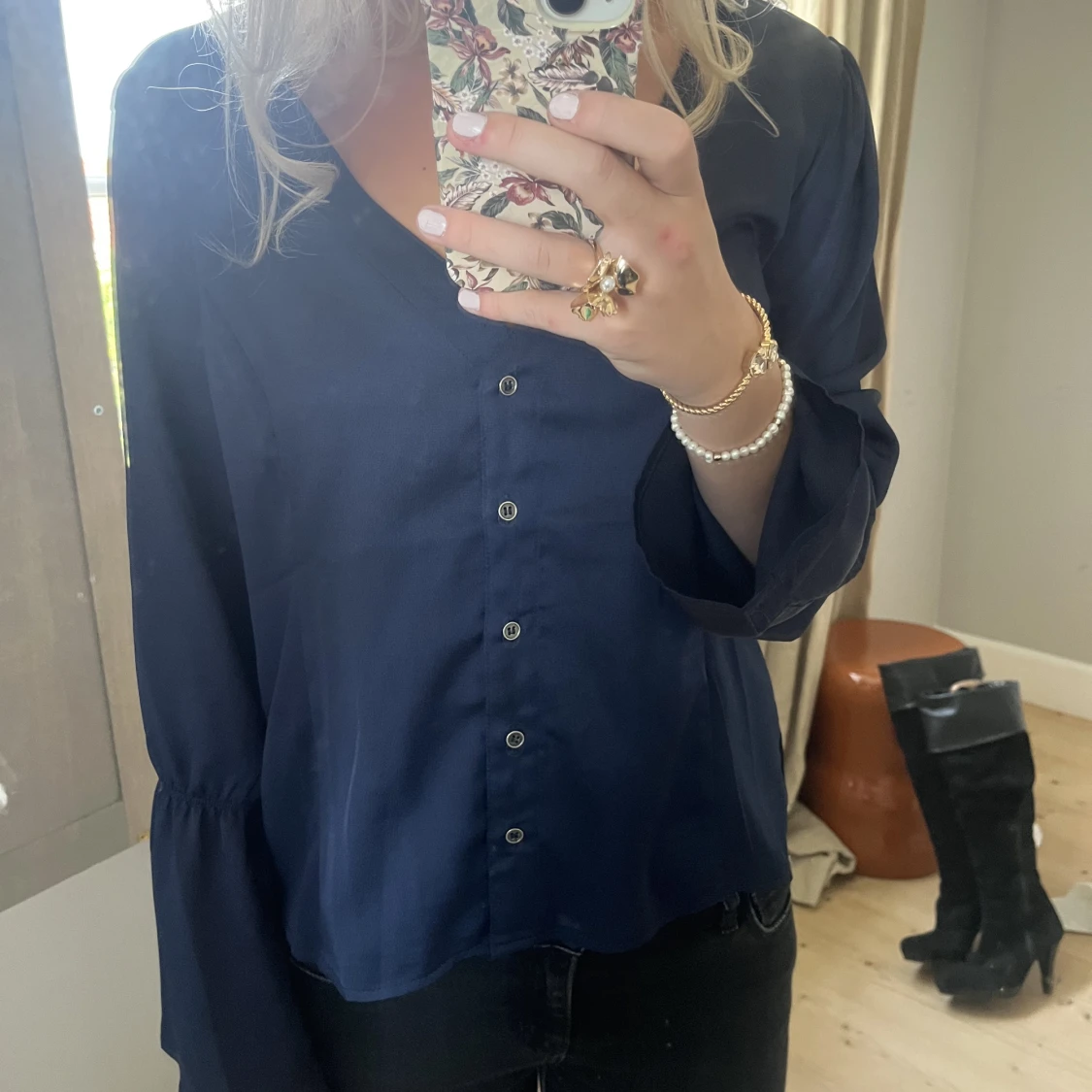 Mörkblå blus från NA-KD. Storlek 38 men passar på mig som brukar ha S. Köparen står för frakten📦pris kan diskuteras💕