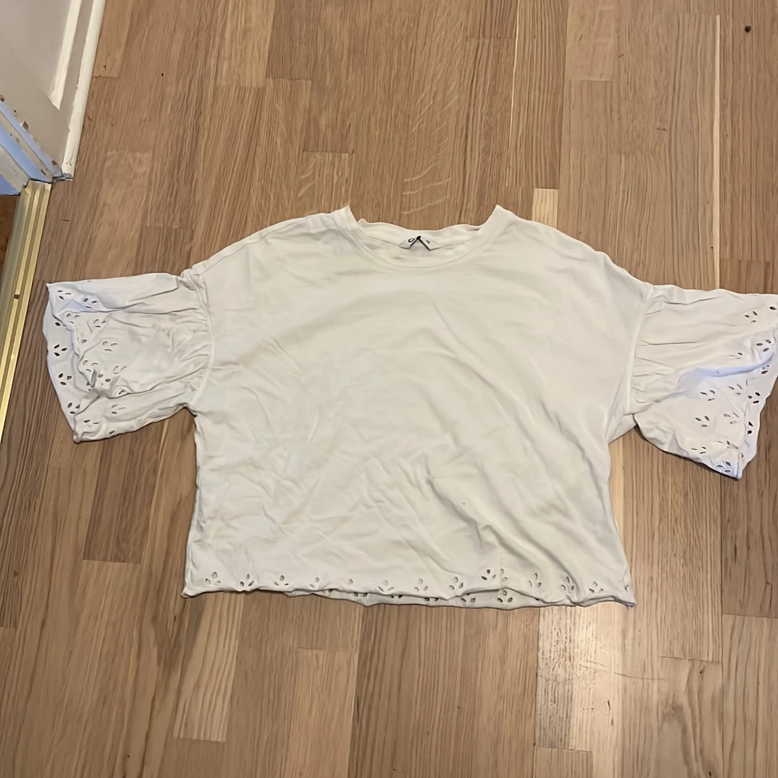 Säljer denna super söta blus ifrån Cubus då den inte kom till användning. Den har fina detaljer på både ärmar och vid tröjans slut.