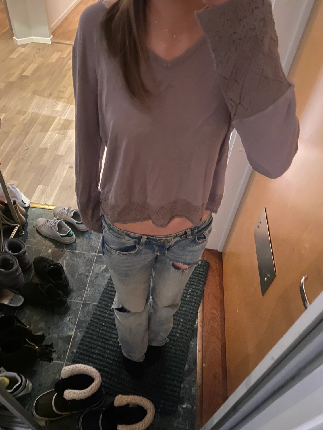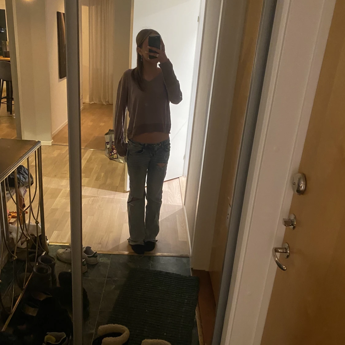 Säljer fu denna fina tröja med spets i ärmarna💕köpt secondhand 💕