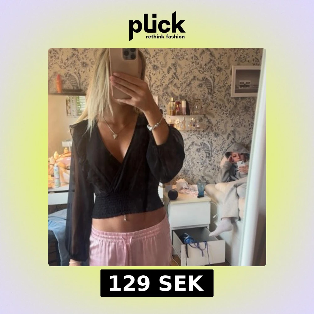 Svart omlott blus med volanger. Knappt använd och är i nyskick. Den är från stradivarius och är xs.