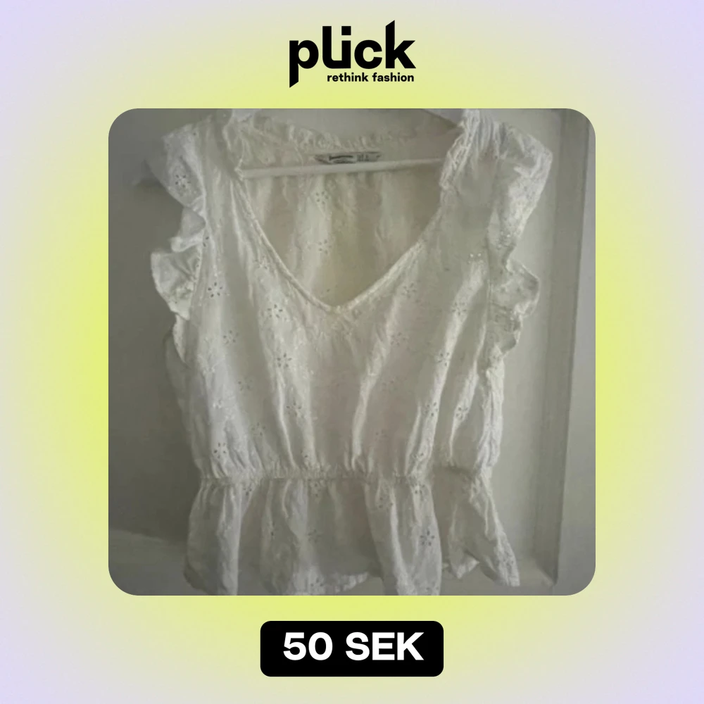 Vit broderad blus som är v-ringad med lite volanger. Superfin till sommaren🙏