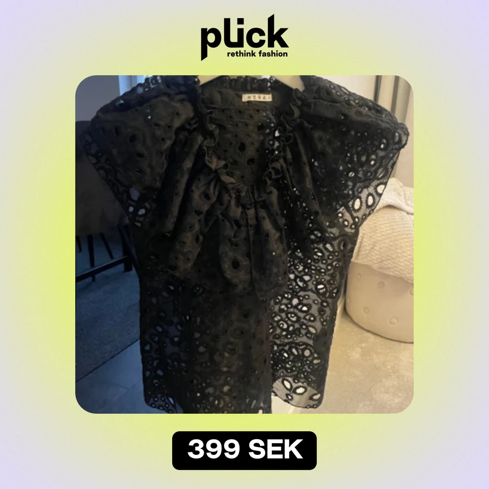 Svart kort tröja med hål runt om,detalj med en puff (krage) endast använd 1gång (nyskick) Super fin o passar till allt Köptes för 499kr på Åhléns