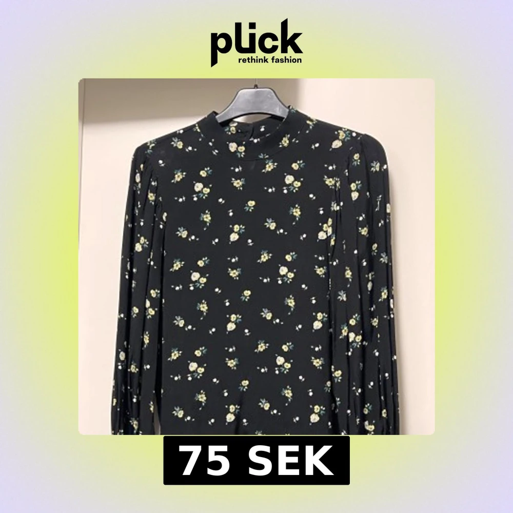 Svart klänning med små blommor i vitt och gult, långärmad och med hög hals. Tunt och mjukt material som faller snyggt. Perfekt för dig som gillar romantiska och söta detaljer. Blommönstret ger en fräsch och ungdomlig vibe.
