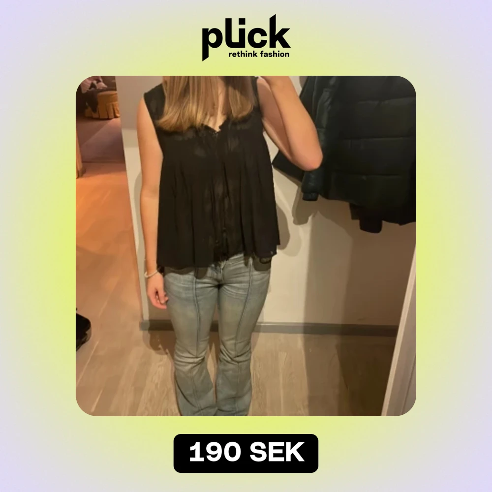 Super snygg blus som tyvärr inte kommer till användning. Den har en skada vid brösten men det går lätt att sy.