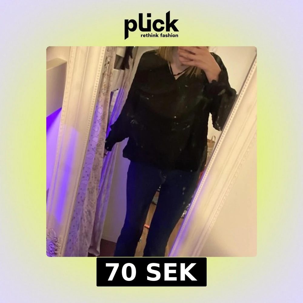 Säljer en svart blus från H&M i storlek 38. Den har lite trekvartslånga ärmar men typ endå långa ärmar se bilder för mer exakt 💕 den har ett tunt material och v-ringning den har även resor vid slutet på ärmarna. Tyget är gjort lite speciellt se näst sista bilden ⭐️