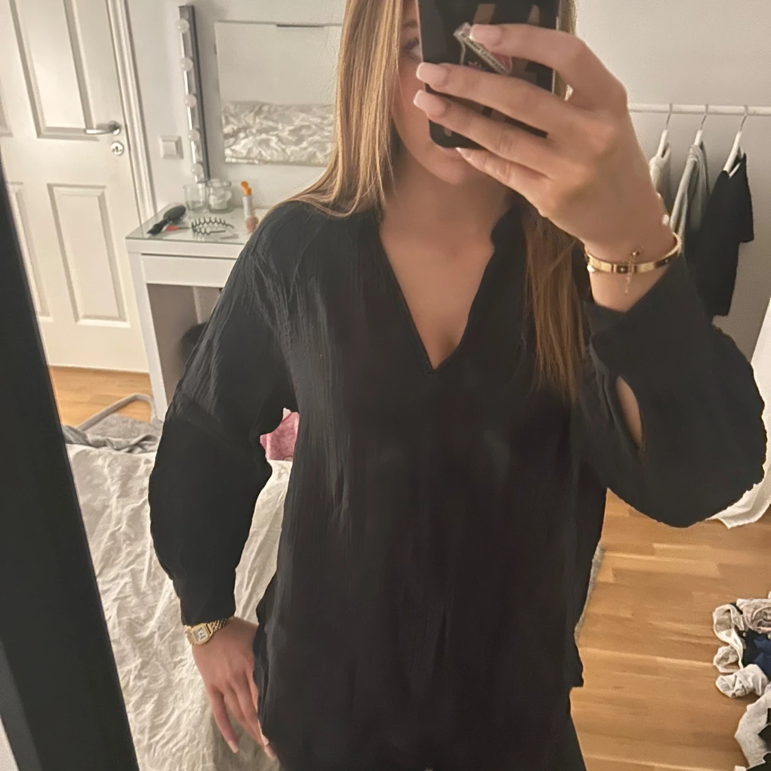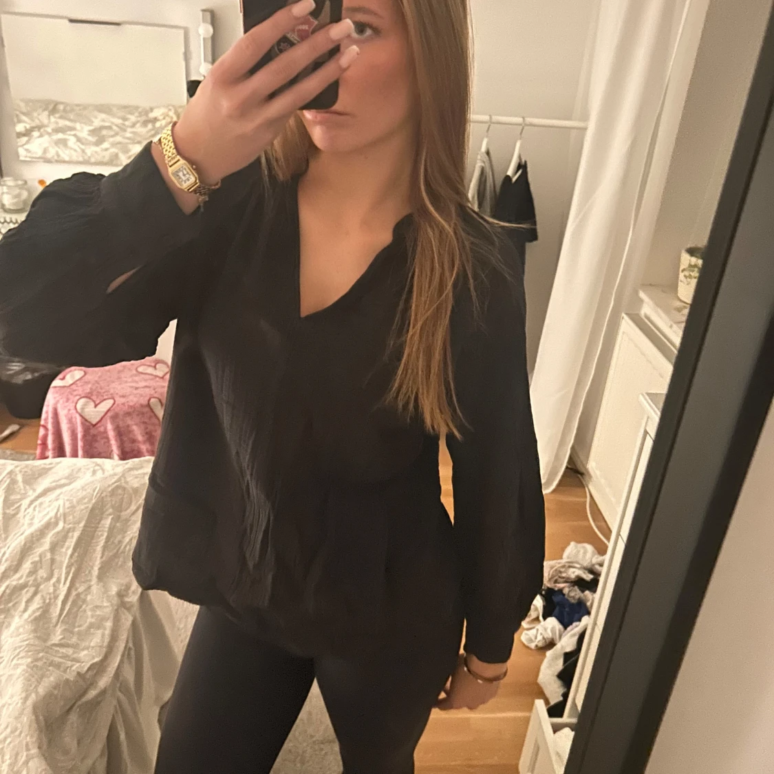 Jättefin svart blus från h&m använd fåtal gånger och är i fint skick. (Ej struken på bilden)💋