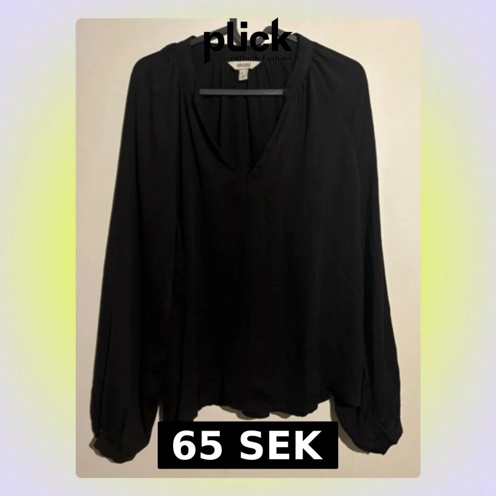 Stilren svart blus från AWARE med v-ringad hals och avslappnad passform. Tillverkad i ett mjukt, lätt tyg som ger ett snyggt fall. Långa ärmar med diskreta muddar vid ärmslut. Perfekt att matcha med jeans eller kjol.