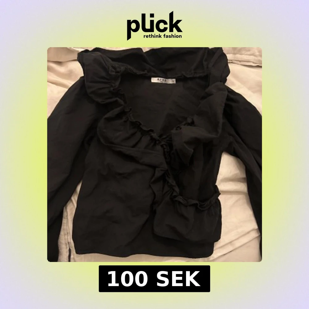 Elegant svart blus från NA-KD med volangdetaljer längs halsringningen och framsidan.