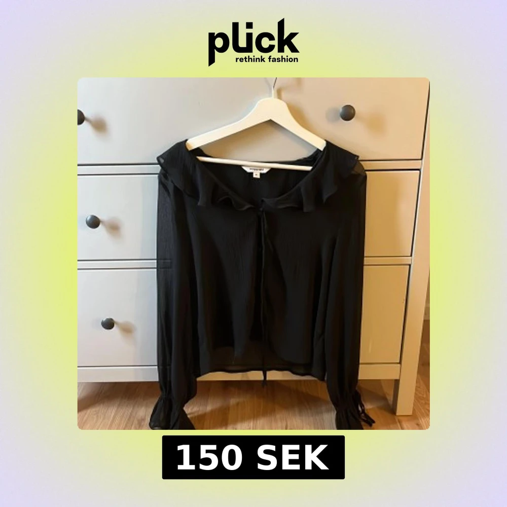 Säljer en jättefin blus då den aldrig kommer till användning. Den är genomskinlig men går att ha ett linne under. Använd 1 gång