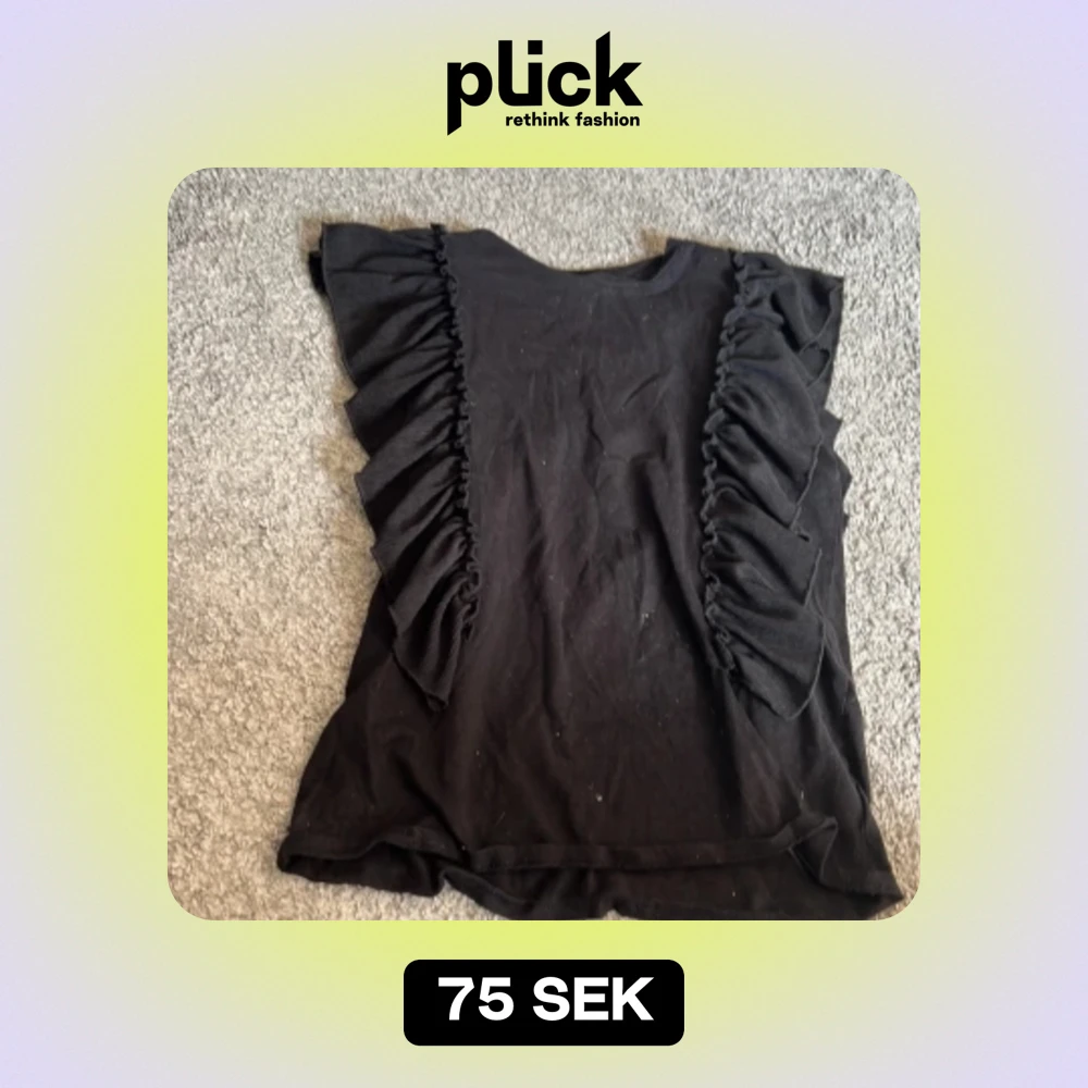 JĂ€tte vacker svart blus med fina volanger. Har inte blivit anvĂ€nd sĂ„ mycket sĂ„ Ă€r Oki bra skickâŁïž