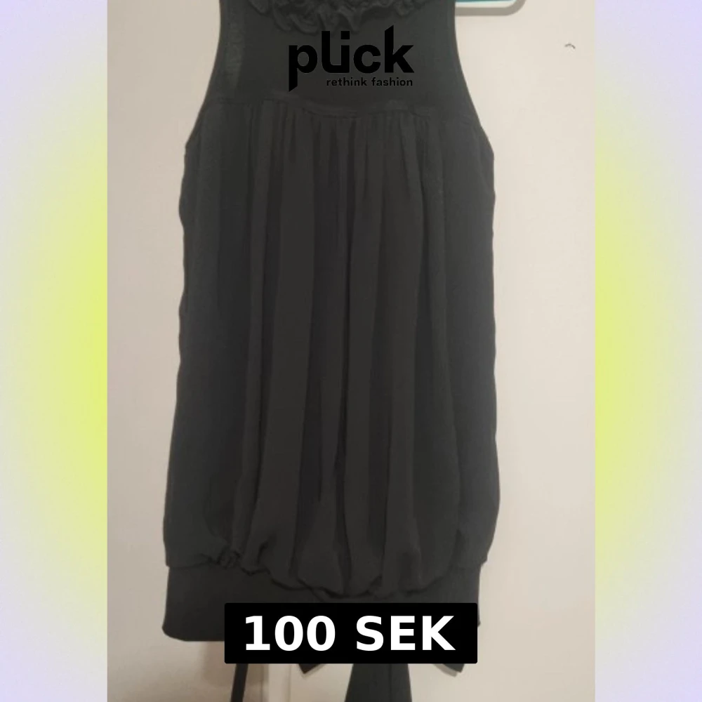 Supersnygg svart blus med volangdetaljer runt halsen och en stor rosett nedtill. Blusen är ärmlös och har en loose passform med ett lätt, flytande tyg som ger en cool siluett. Perfekt för dig som gillar statement-plagg med extra detaljer.