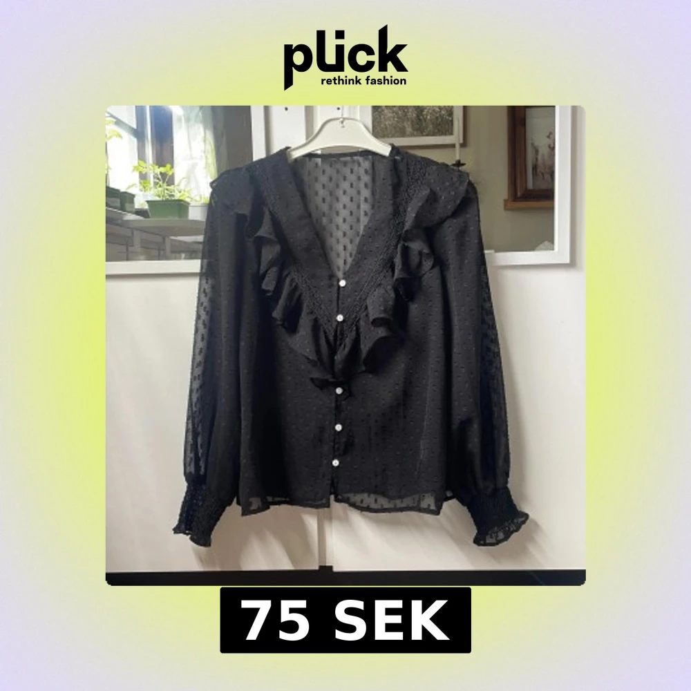Svart blus med fina detaljer och vita knappar fram, köpt från Plick och tror den är från SHEIN, står ingen storlek men skulle uppskatta att det är xs, s eftersom den är för liten för mig. Ingen defekter som jag upptäckt och verkar vara sparsamt använt på grund av dess fina skick💕💕💕pris kan diskuteras