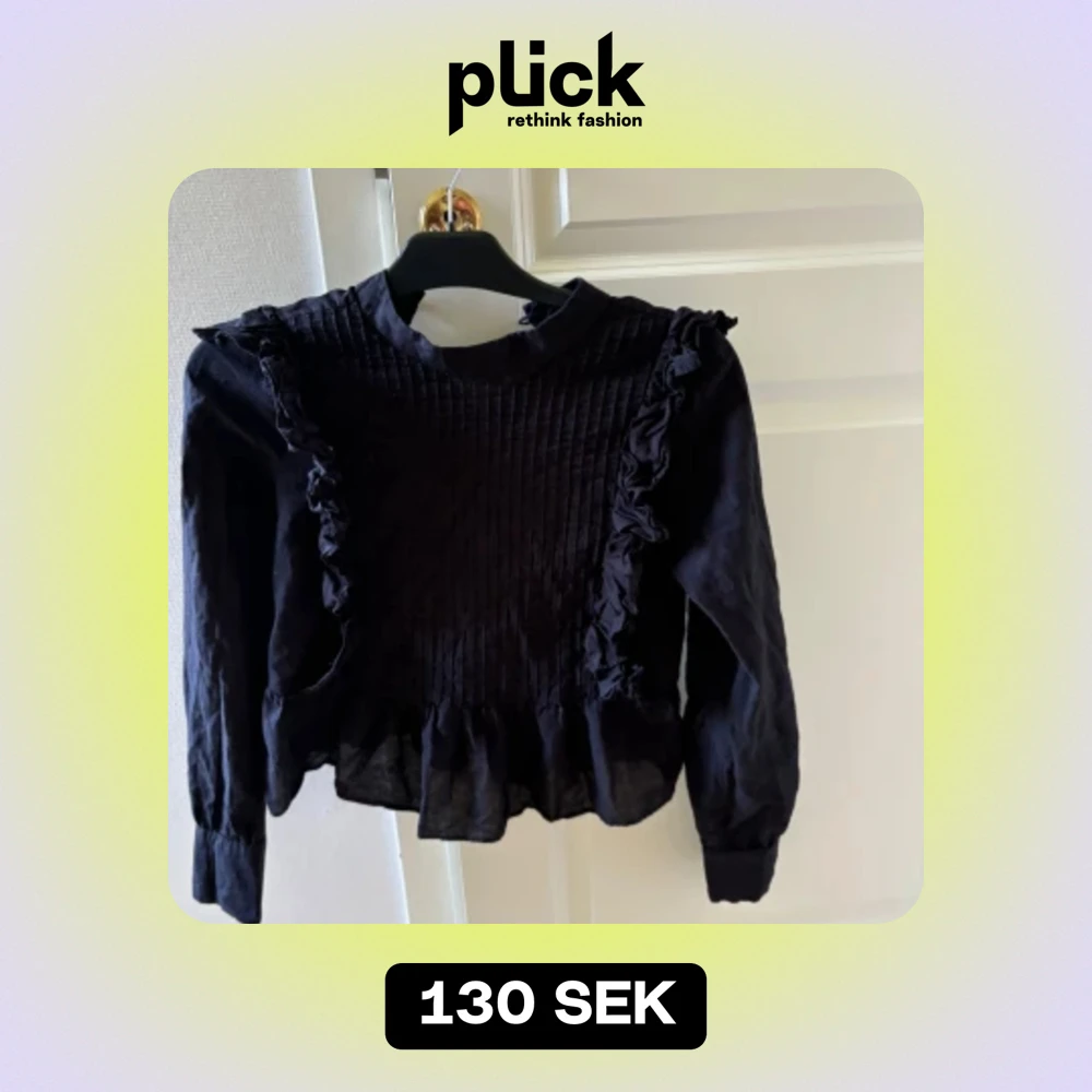 En svart blus i storlek 34. Osäker på att sälja men pris kan diskuteras. Löpt från Zalando.