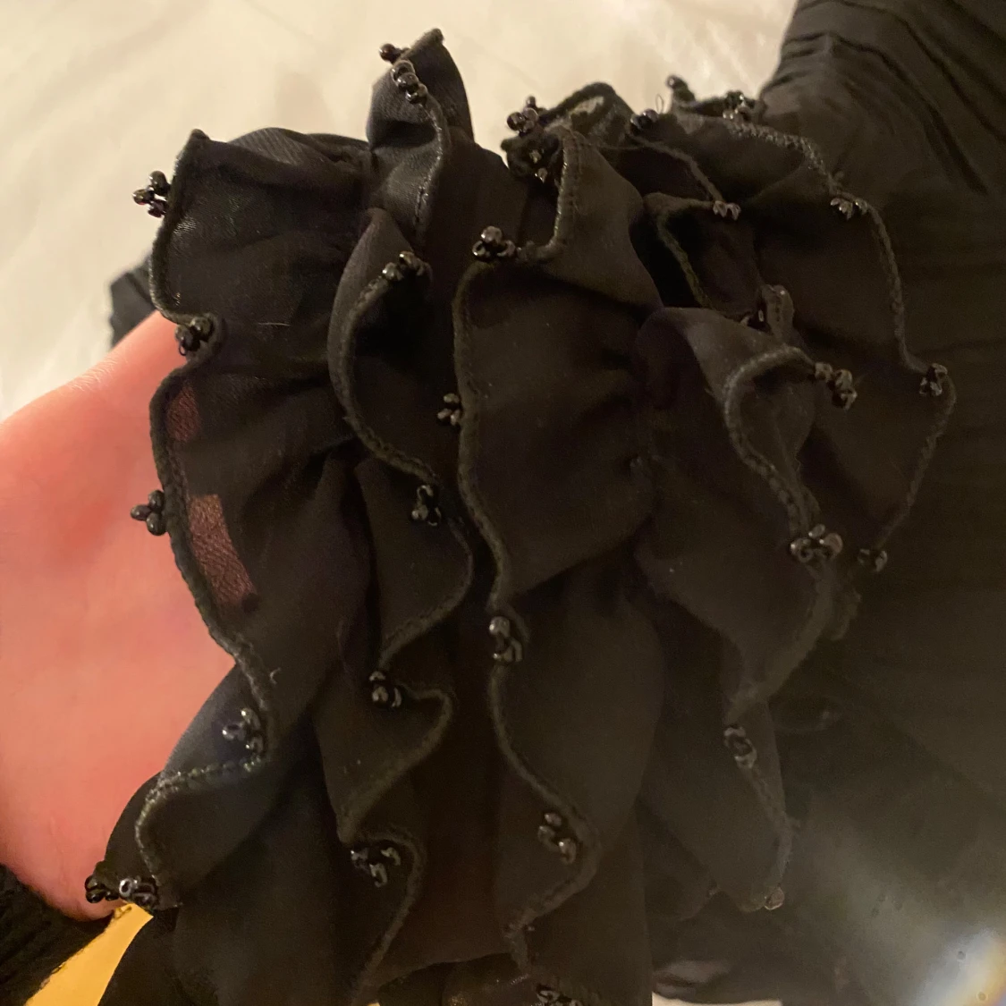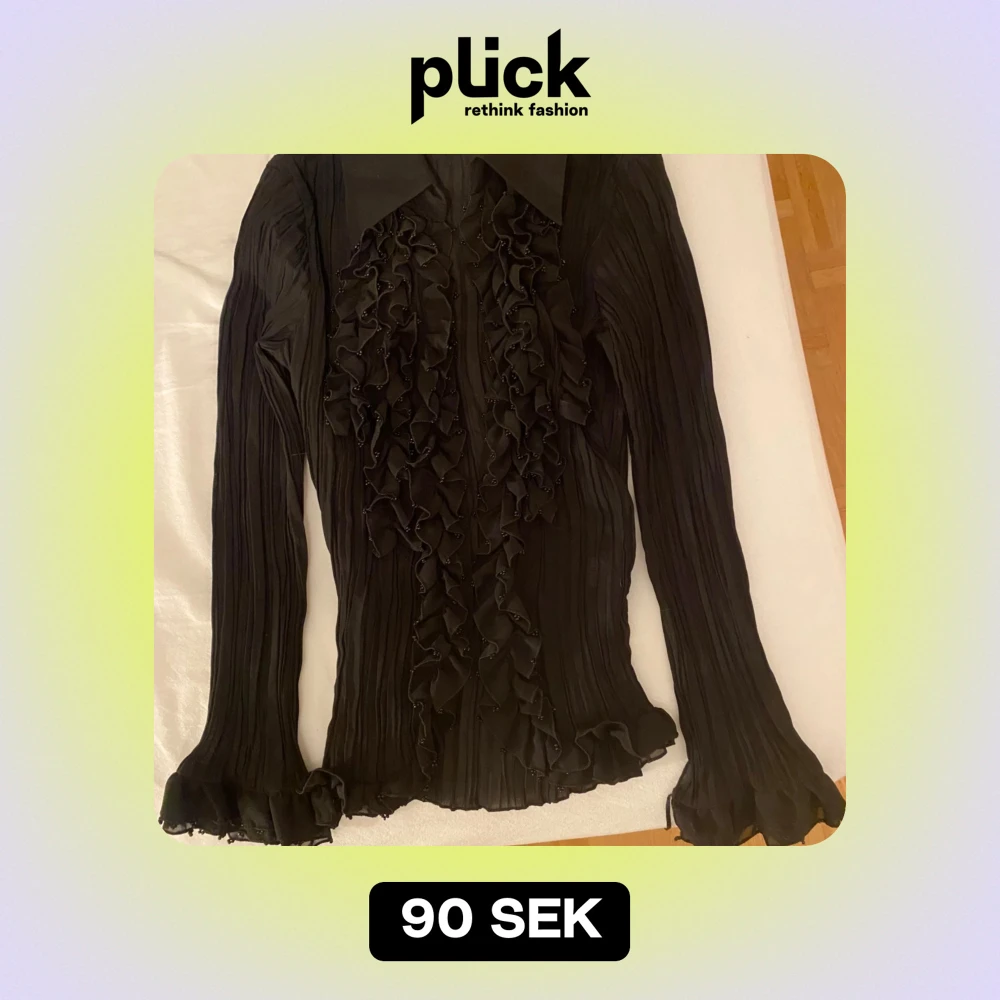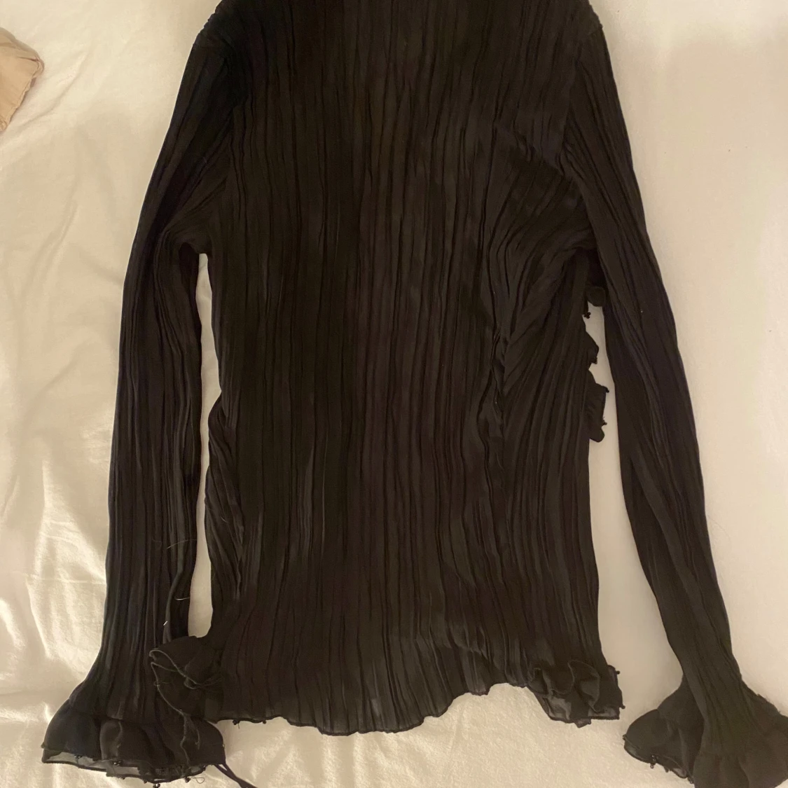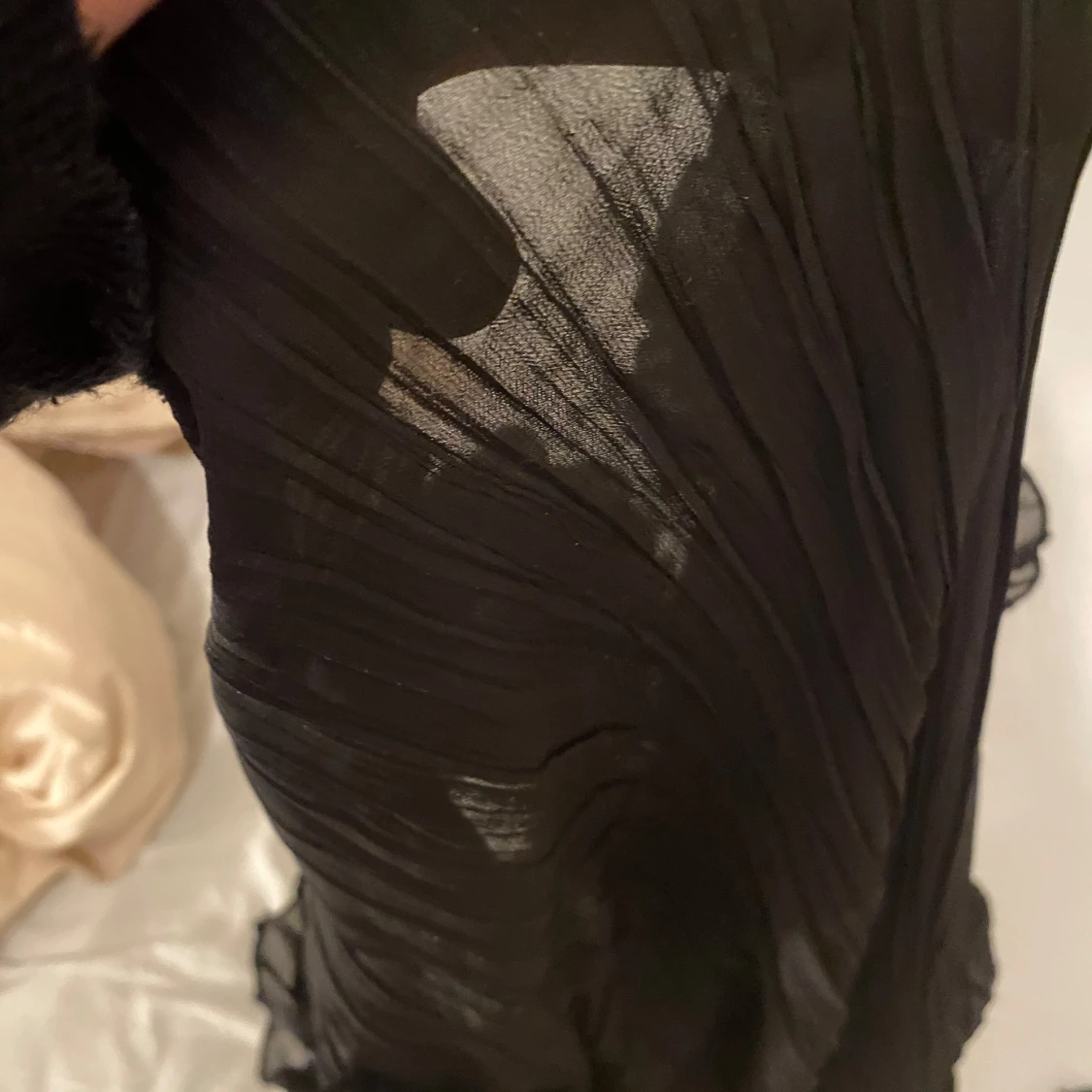 Svart blus/ topp i storlek S. Relativt genomskinligt material men den är veckas så man ser inte igenom. Köpt secondhand men använt fåtal gånger. Superfin passform❤️