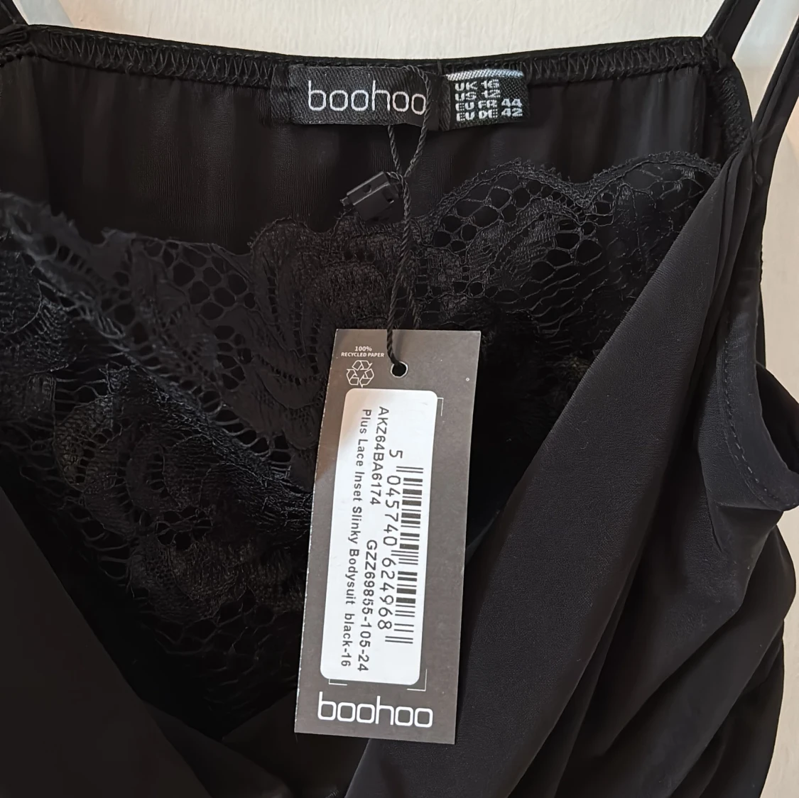 Svart body med spets från Boohoo
