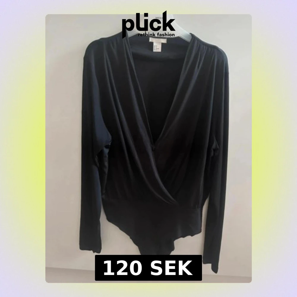 Svart långärmad bodysuit från H&M med omlott-design och djup v-ringning. Passar till både byxa och kjol. Perfekt för att skapa en clean och stilren look