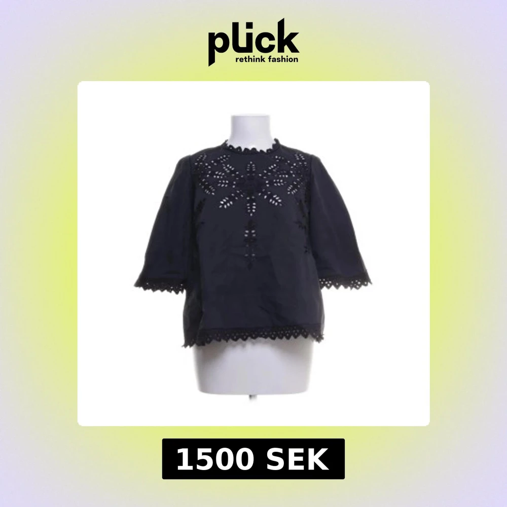 Svart blus från Isabel Marant i 100% bomull med broderade detaljer och hålmönster framtill. Blusen har rund hals med dekorativ kant och trekvartsärmar med spetsig avslutning. Perfekt för dig som gillar unika och stilrena plagg.