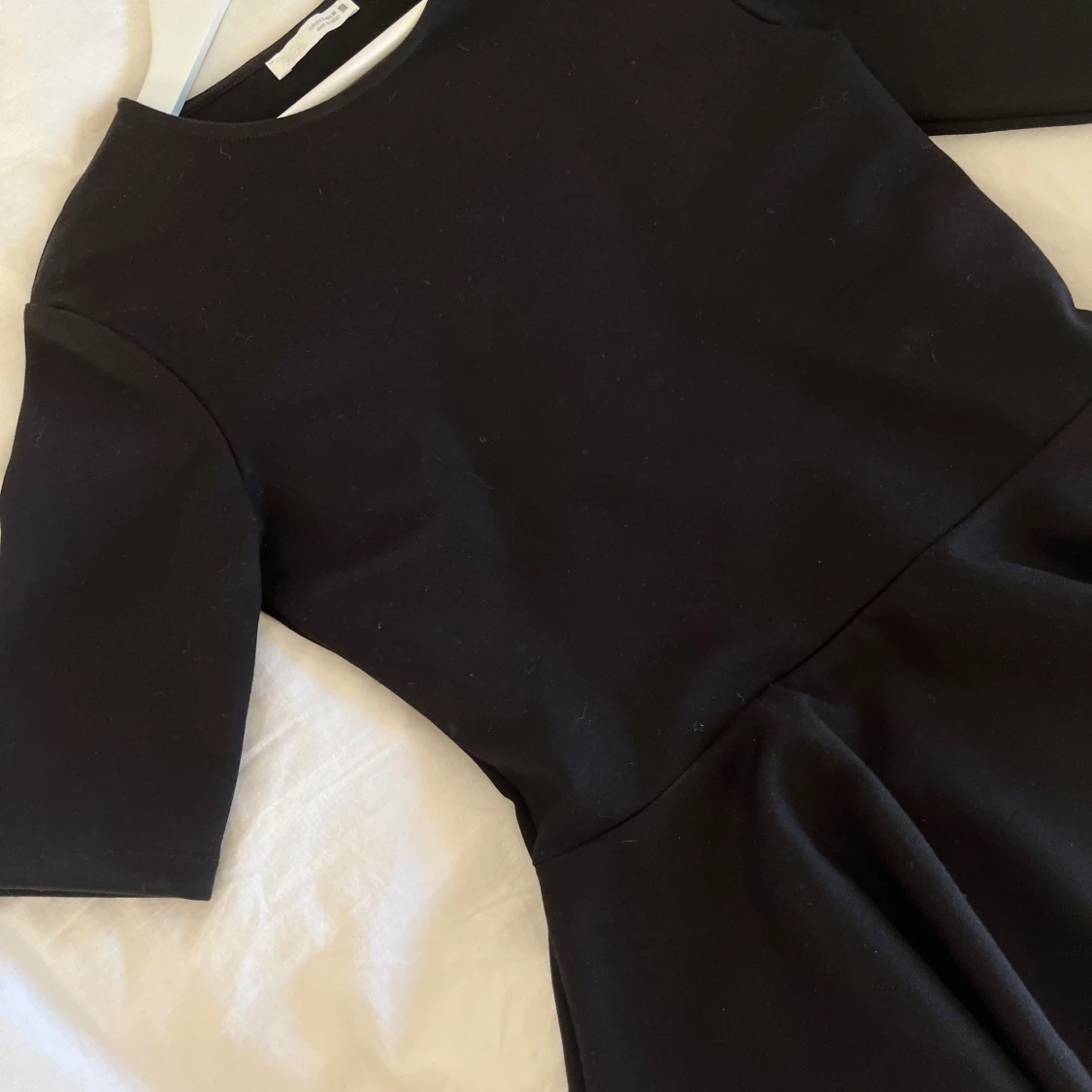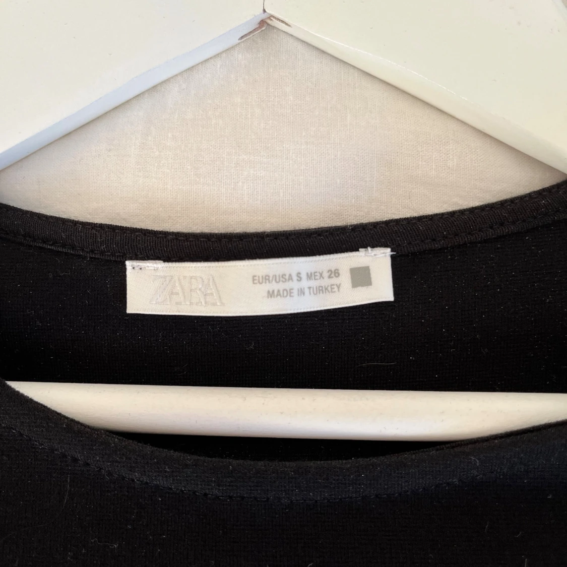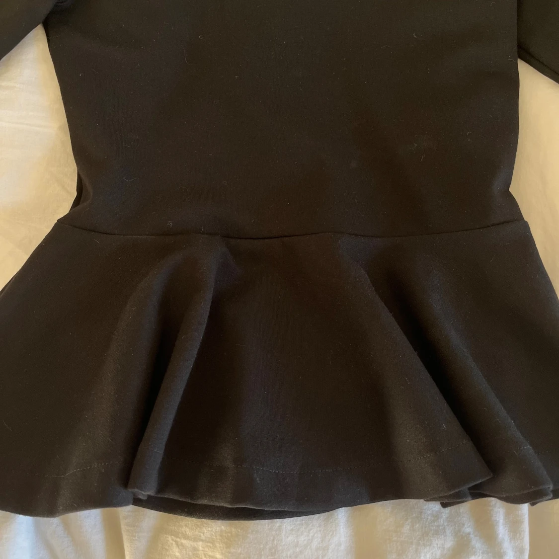 Fin svart blus från Zara med volang längst ner på tröjan men slät upptill, använd endast en gång så de är i väldigt bra skick! Storlek S