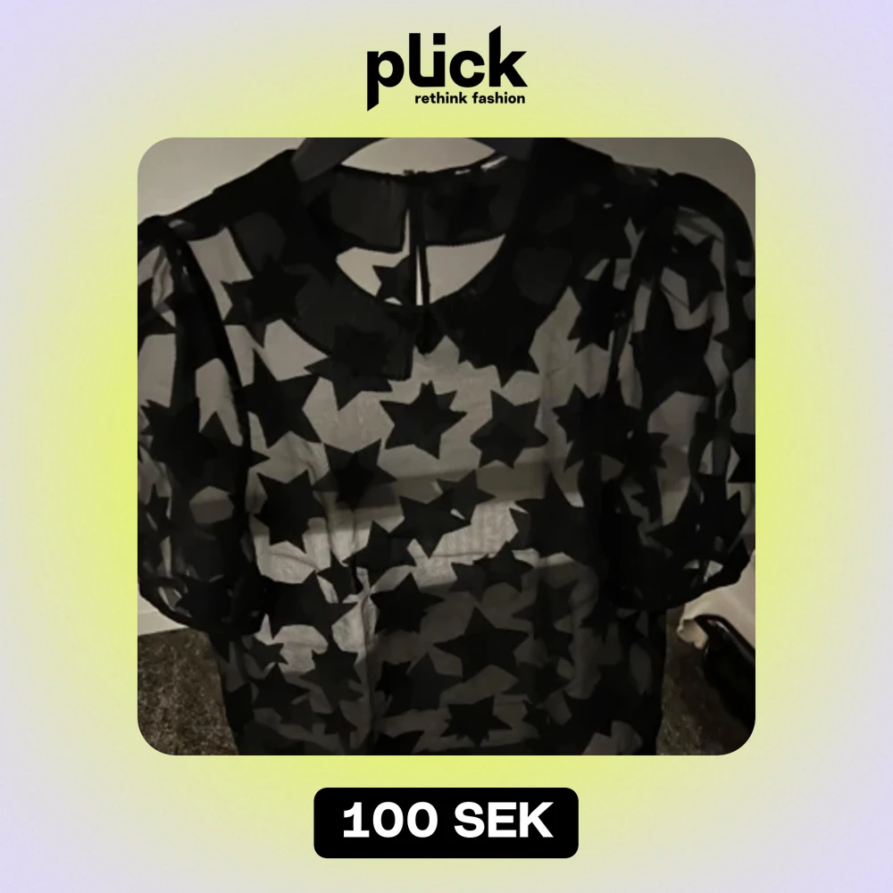 Jättefin svart mesh blus med krage och stjärnor ⭐️ Märket är okänt men liknar Zara och Ginas plagg💕