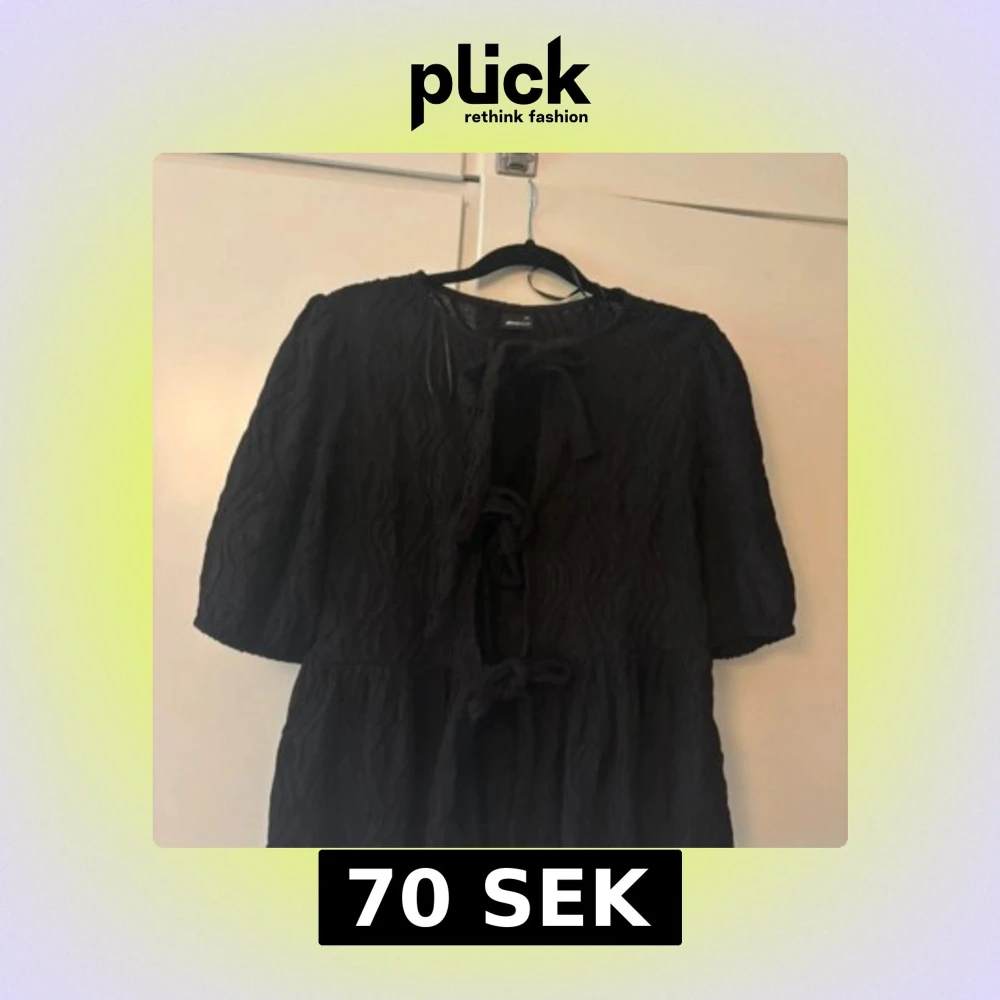 Svart topp från Gina Tricot med knyt framtill och lätt struktur i tyget. Toppen har halvlånga ärmar och en avslappnad passform. Perfekt för dig som gillar en stilren look med lite edge.