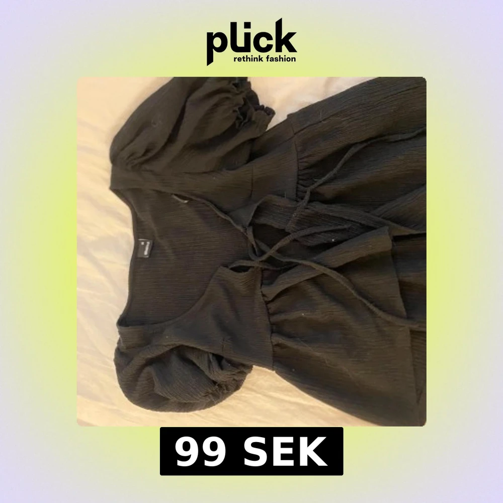 Säljer en svart omlottblus från Gina tricot med puffiga kortärmar och snörning i midjan. Blusen har en lätt ribbad struktur och ger en snygg siluett. Perfekt för dig som gillar stilrena och trendiga plagg.