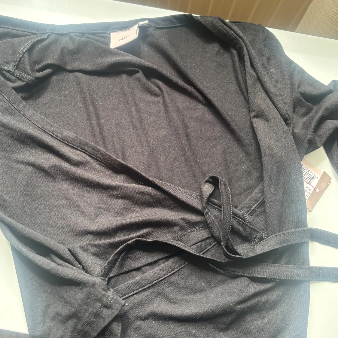 Svart omlott tröja från Nelly i mjuk bomull. Tröjan har lång ärm, v-ringning och knyt i midjan för en snygg passform. Enkel och stilren design som passar perfekt till många olika looks. Jag säljer den för jag inte riktigt tyckte om den, den är aldrig använd och prislappen sitter kvar!💕