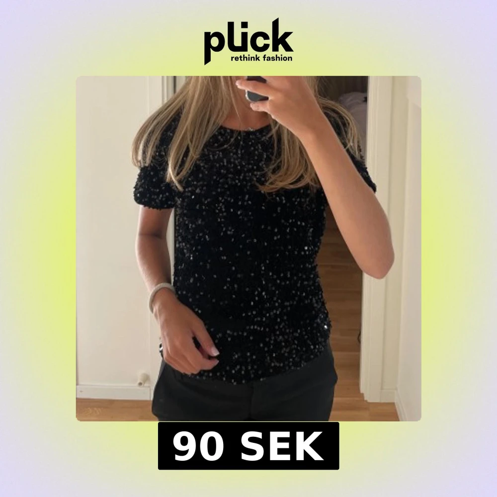 Svart söt T-shirt med paljetter. Perfekt till nyår✨Tror den är i strl S, dubbelkollar såklart innan den säljes. Använd en gång.