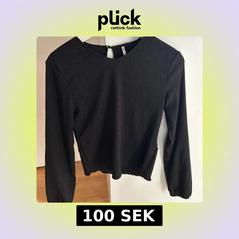 Säljer en svart blus från ONLY i storlek 146/152. Blusen har ett diskret prickigt mönster, långärmad design och rund halsringning. Materialet är lätt och har en snygg struktur som ger en cool känsla. Perfekt för dig som gillar stilrena och enkla toppar.