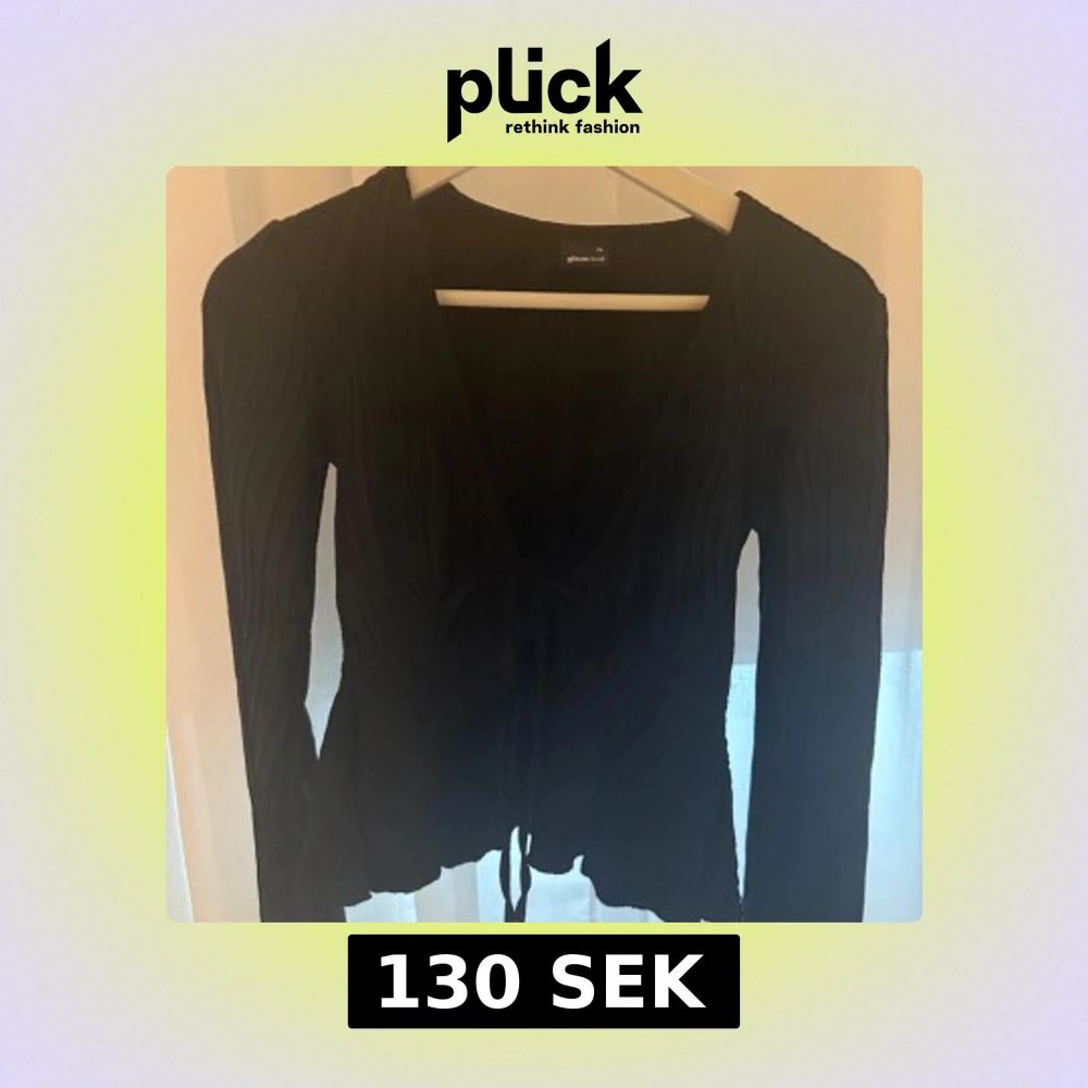 svart ribbad tröja från Gina Tricot med v-ringning och knytning framtill🩷 supersöt och passar till de flesta tillfällen