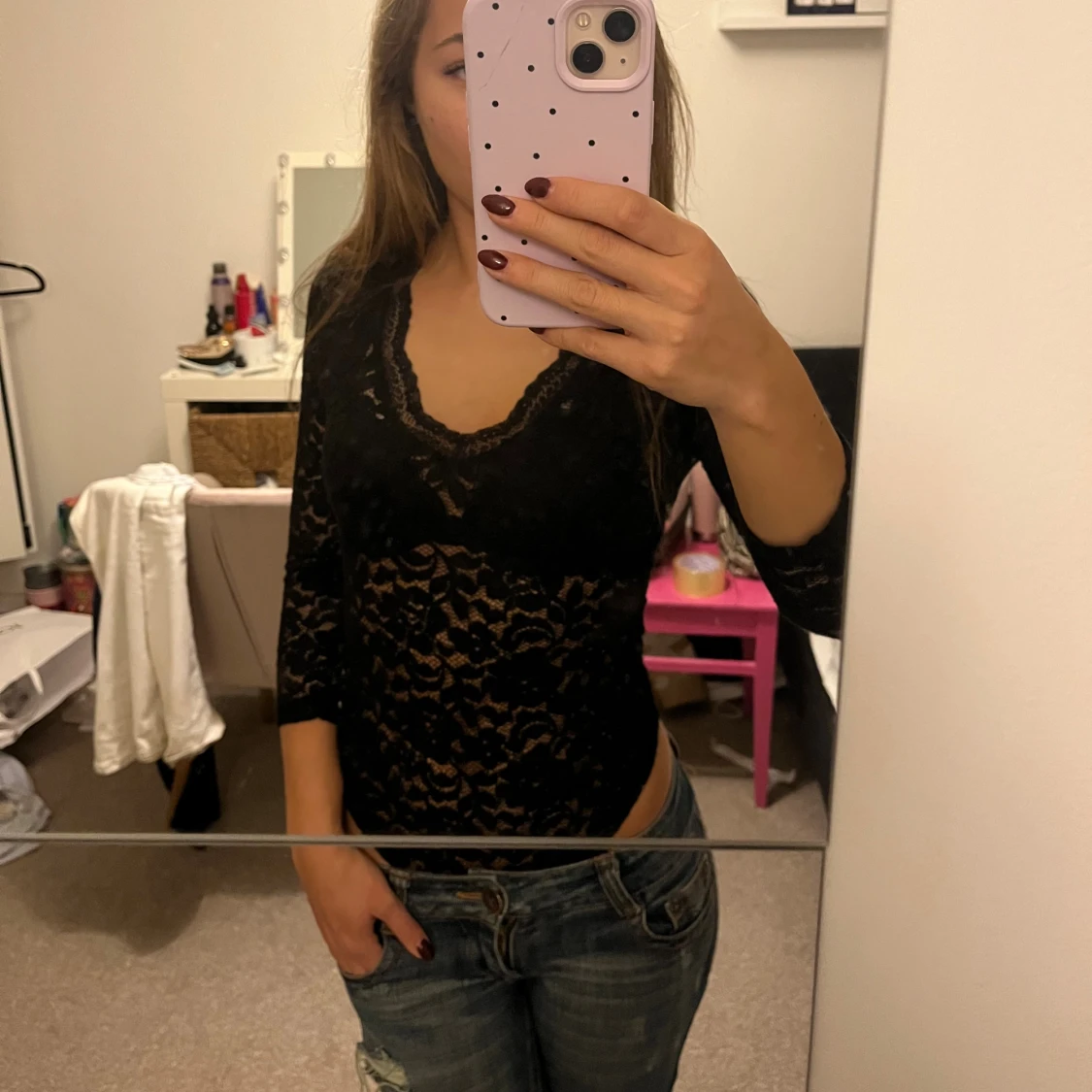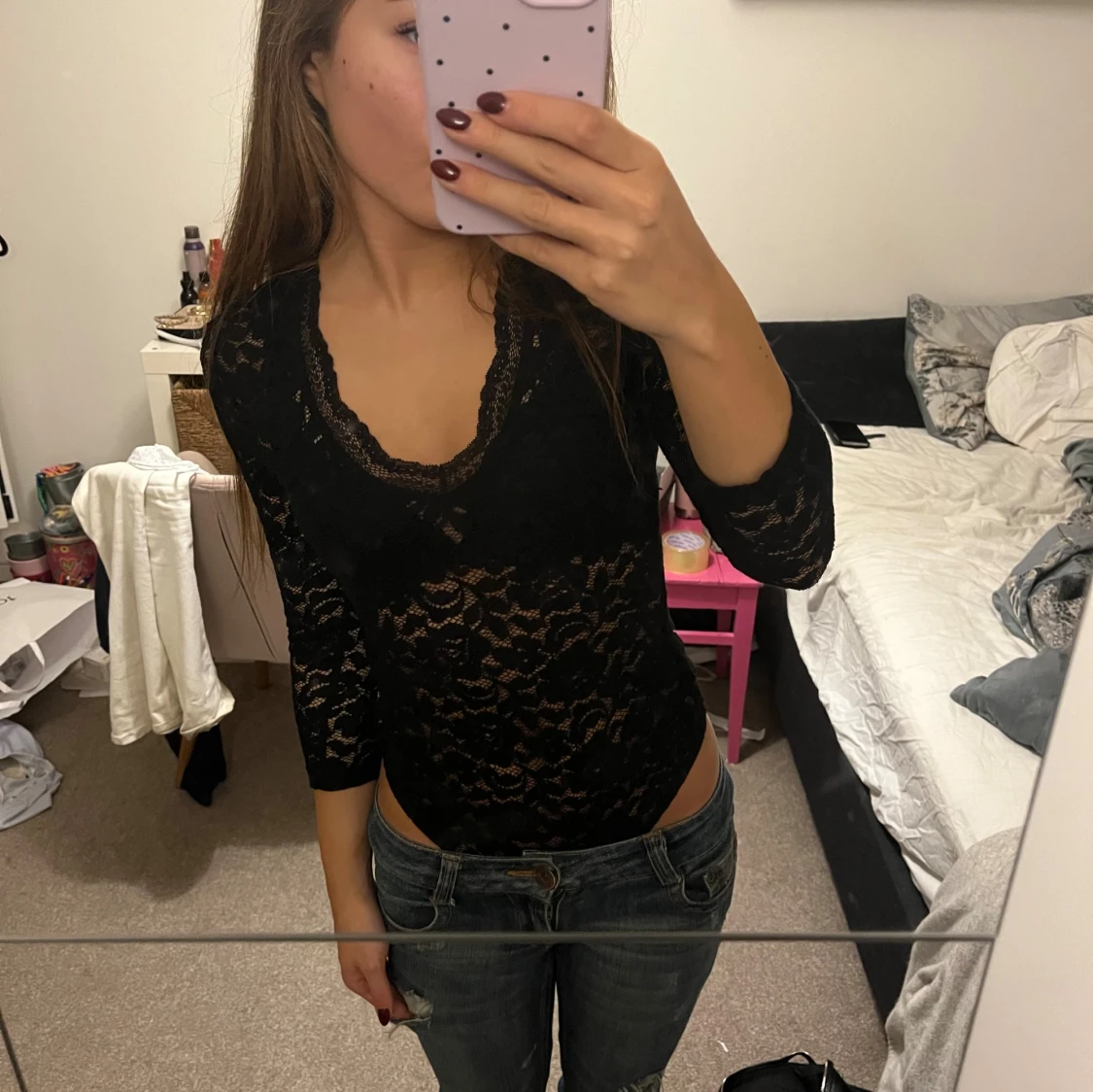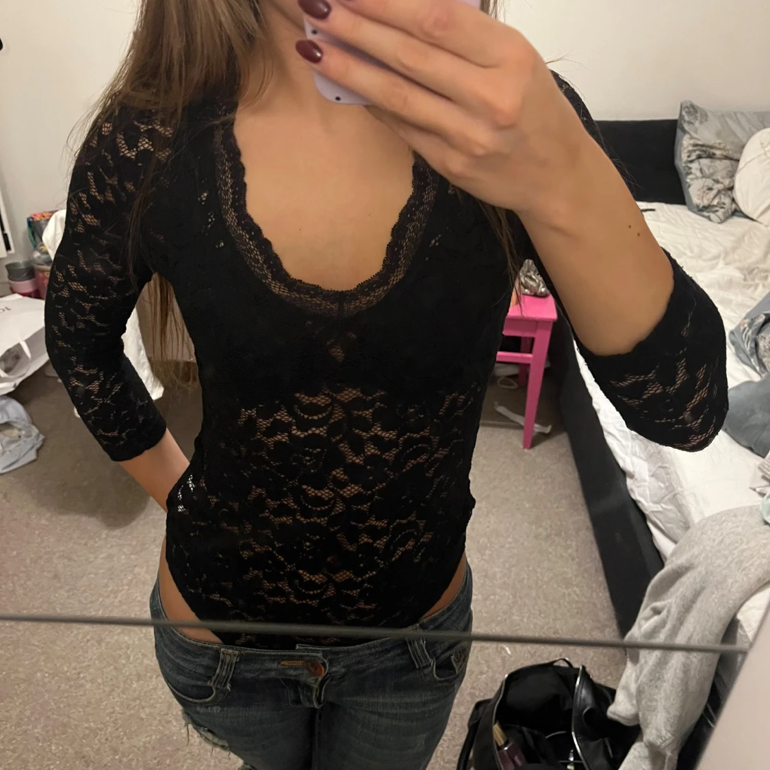 Säljer en skitsnygg svart spetsbody med trekvartsärm och urringning. Säljer pga att den inte kommer till användning längre. Strl S men passar även xs. Pris kan diskuteras!