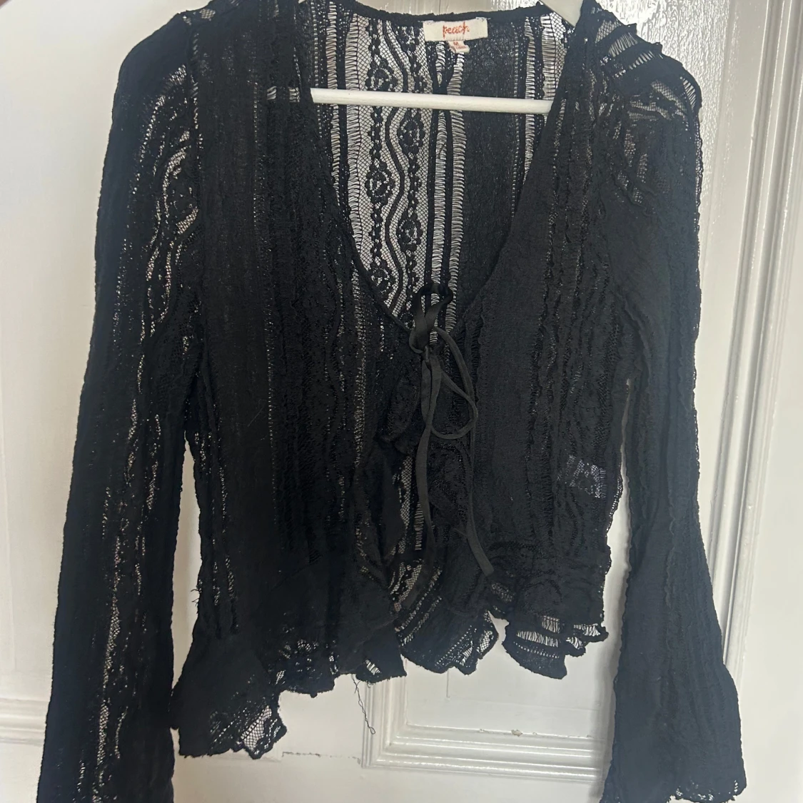 Snygg svart spetstopp/blus som du knyter framtill. Perfekt till sommaren, knappt använd så superfint skick. Passar strl S/M