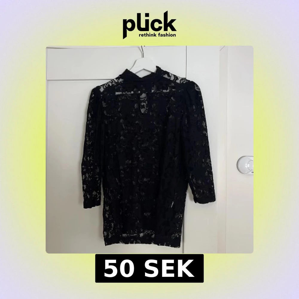 Elegant svart spetsklänning från Vila med trekvartsärmar och en fin knäppning i nacken. Storlek M ☺️