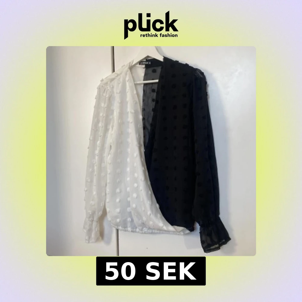 Svart/vit tunn blus som är öppen hela vägen ner , dvs urringningen. Märke Sheilay.