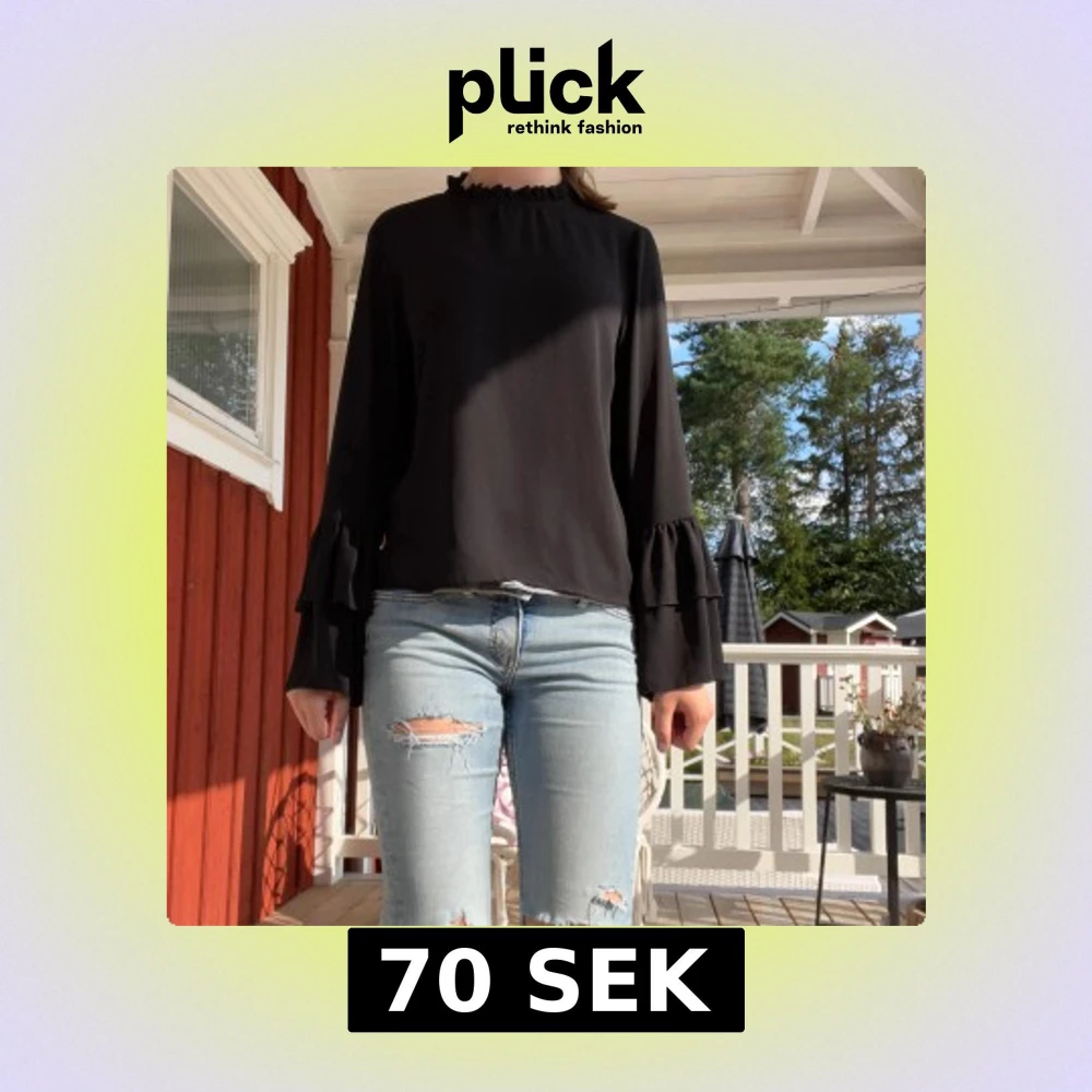Supersnygg svart blus från Gina Tricot i storlek 34. Blusen har långa ärmar med dubbla volanger och en liten volangkant vid halsen. Rak passform och lätt, flowigt material som känns skönt mot huden. Perfekt för dig som gillar stilrena men ändå unika detaljer. Fick den av en kompis fast själv har jag aldrig använt!!💘 tveka inte att fråga saker!!