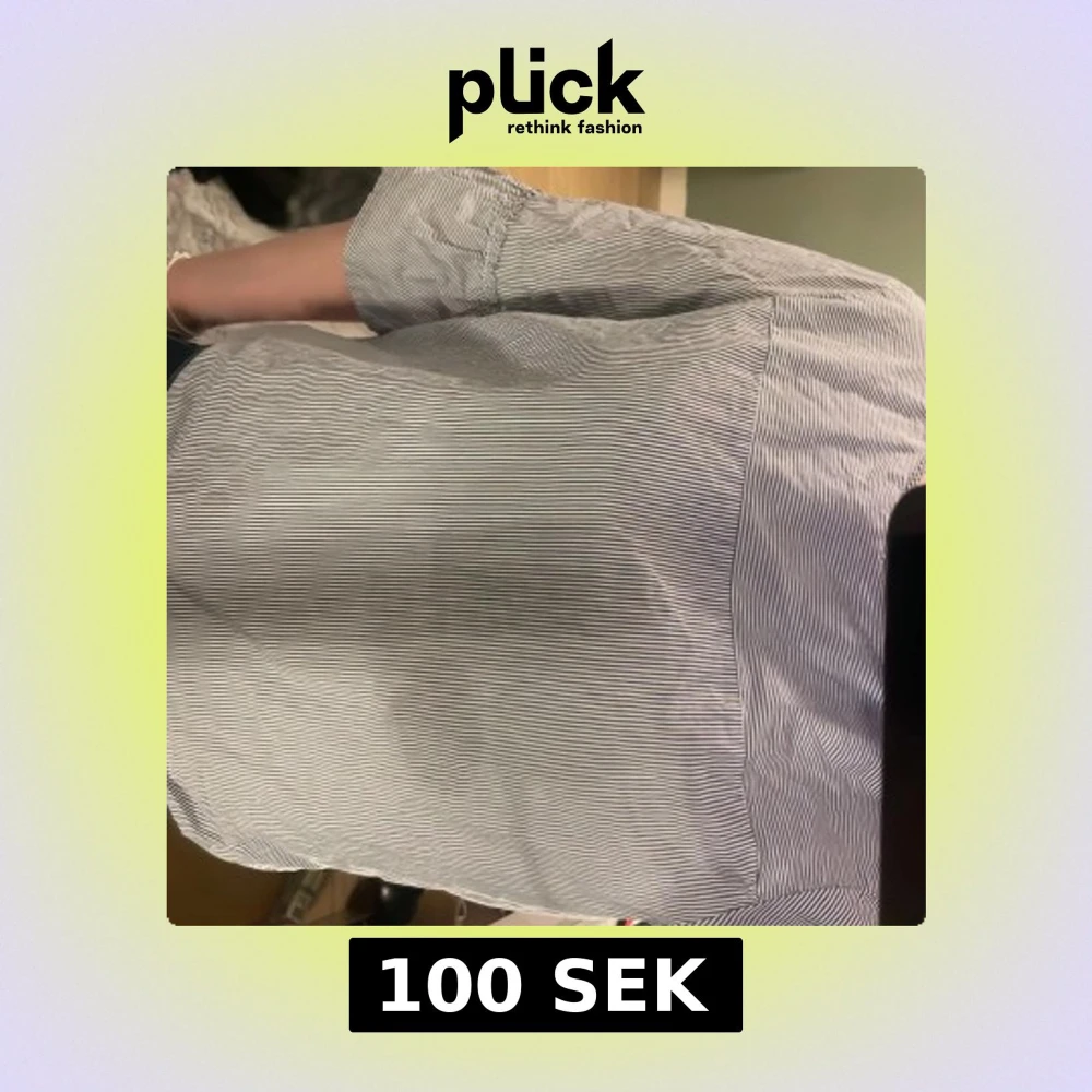 Säljer en stilren blå- och vitrandig skjorta från Tommy Hilfiger. Skjortan har långa ärmar och knappar baktill dock har en av knapparna gått av. Har även en fett fläck som inte är så synlig. *köpare står för frakt*