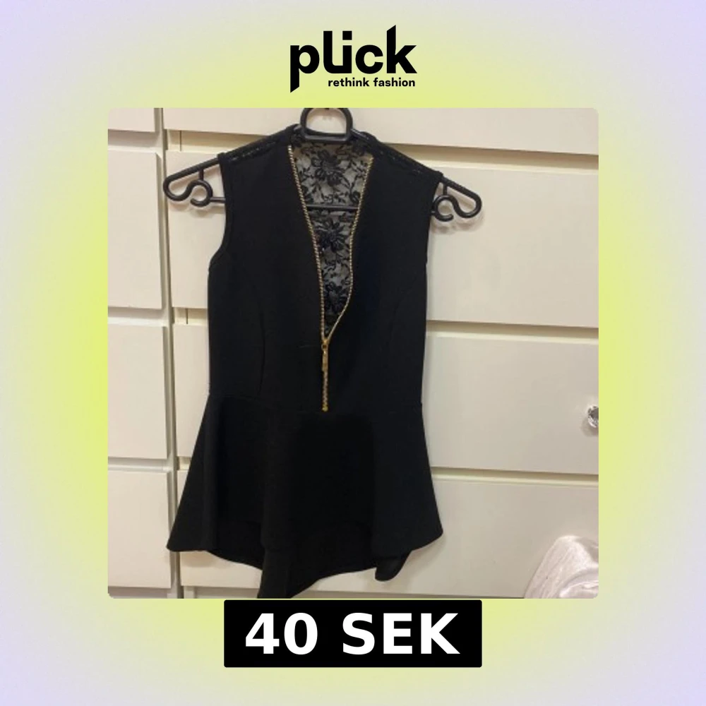 Snygg top med guldfärgad dragkedja. Längre baktill. Och spetstyg i ryggen.