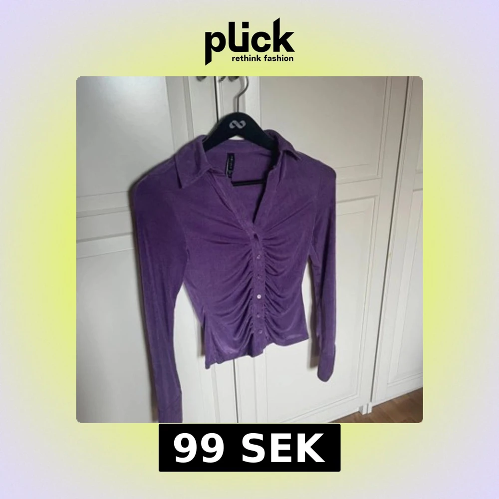 Fin lila topp. Normal längd, sitter tajt. Väldigt fin på!😍 Använd 2 gånger. Så i bra skick✨
