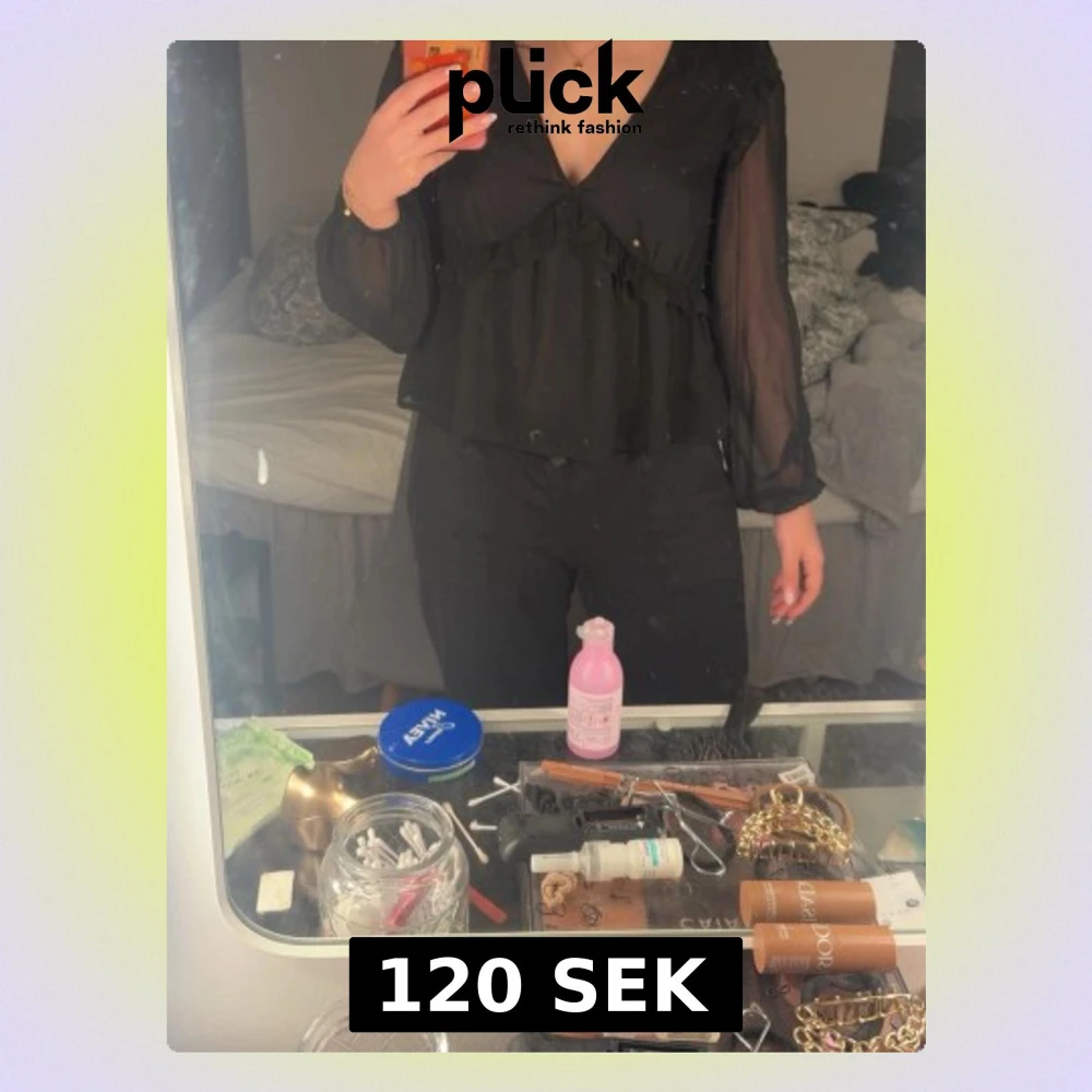 Svart transparent blus med volanger
