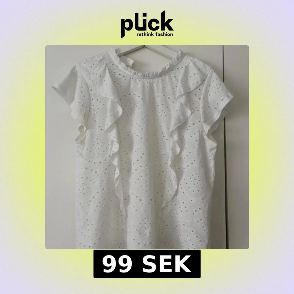 En vit blus med volang från Ellos 💓blusen knäpps med en knapp där bak!