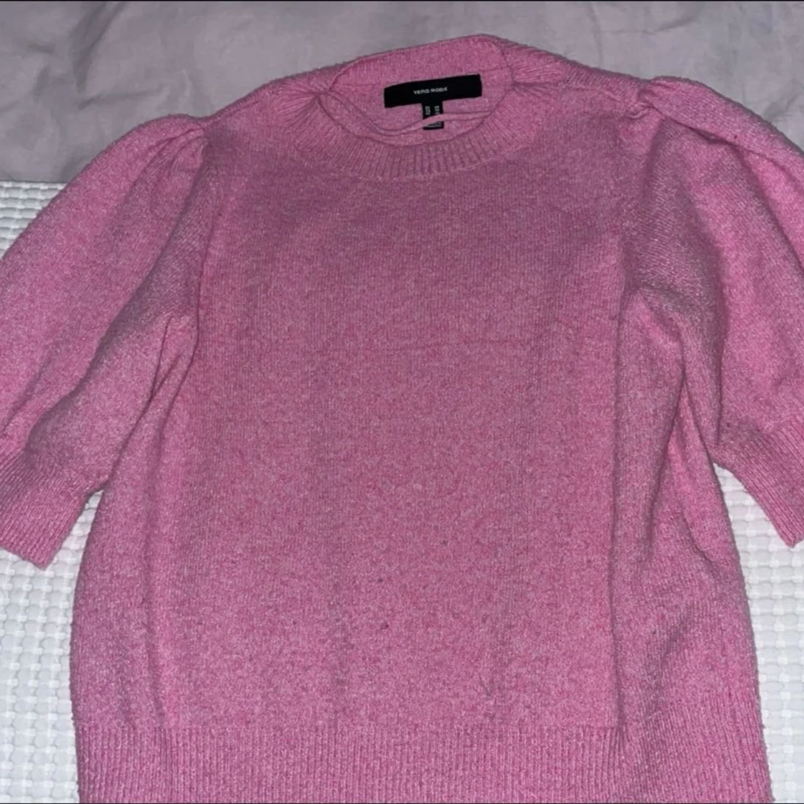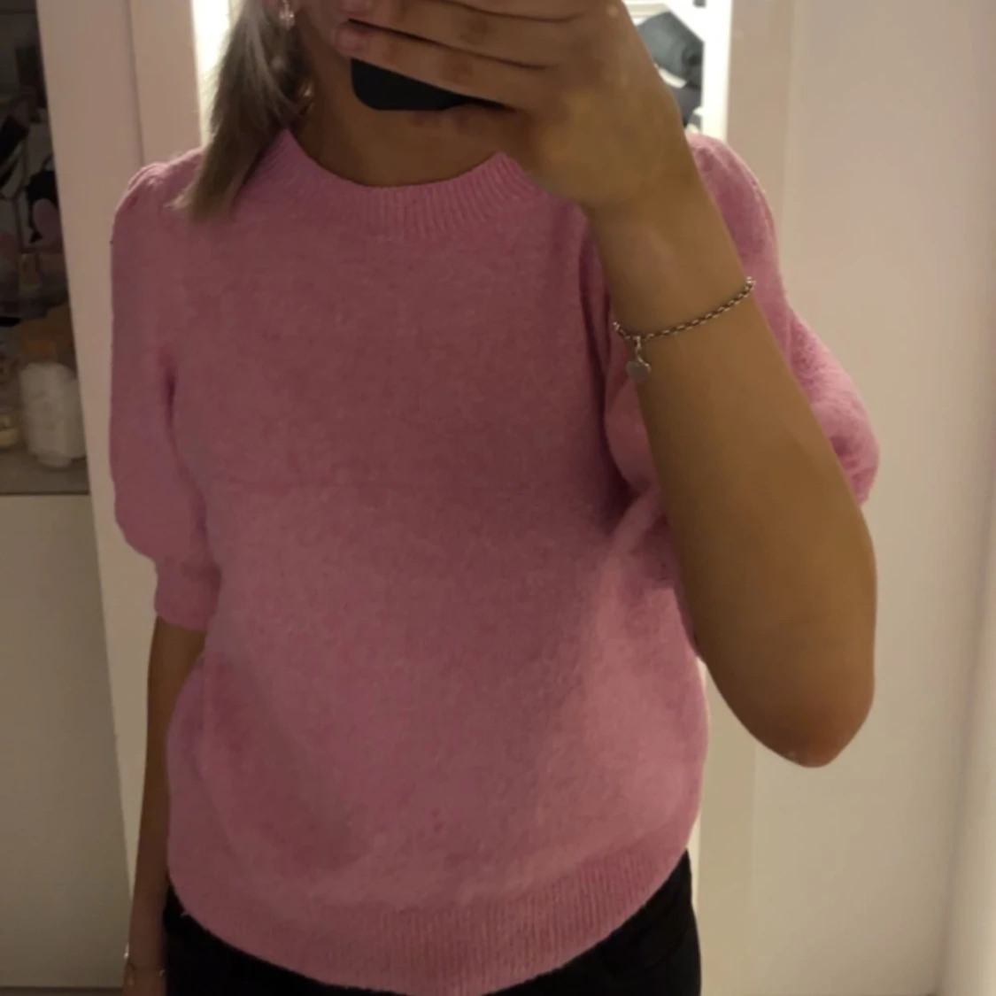 Söt stickad topp med puffaxlar från veromoda. Jätte skön och fin färg men kommer inte till användning.