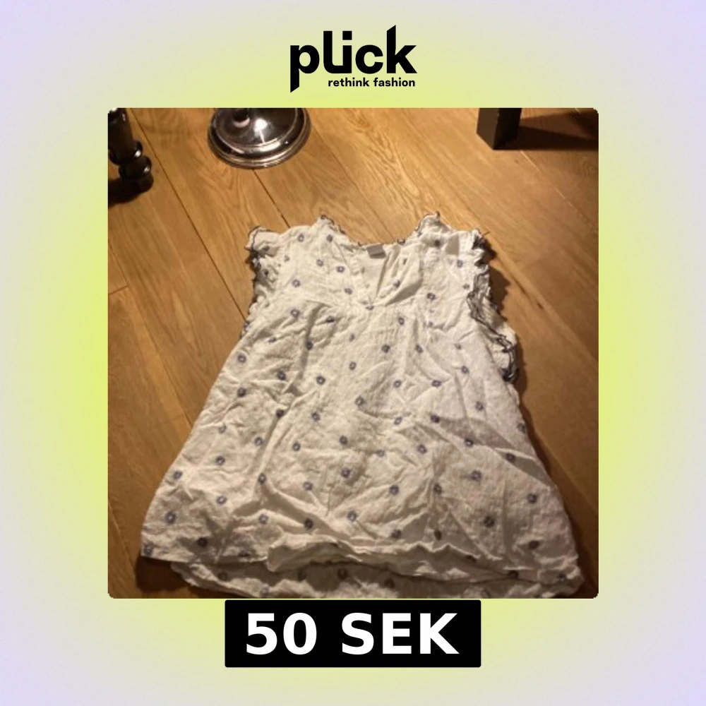 Söt vit blus från Lindex med små blommor i blått och volangdetaljer vid ärmarna. Perfekt för en somrig look!