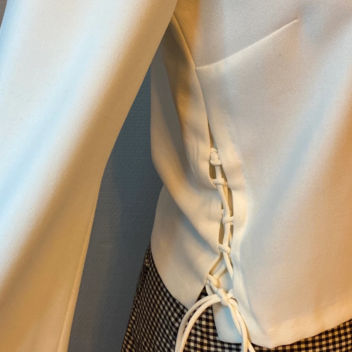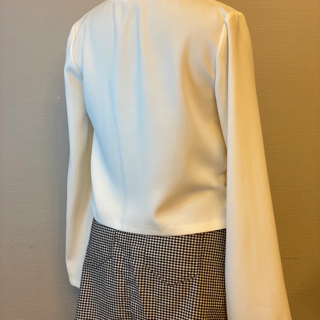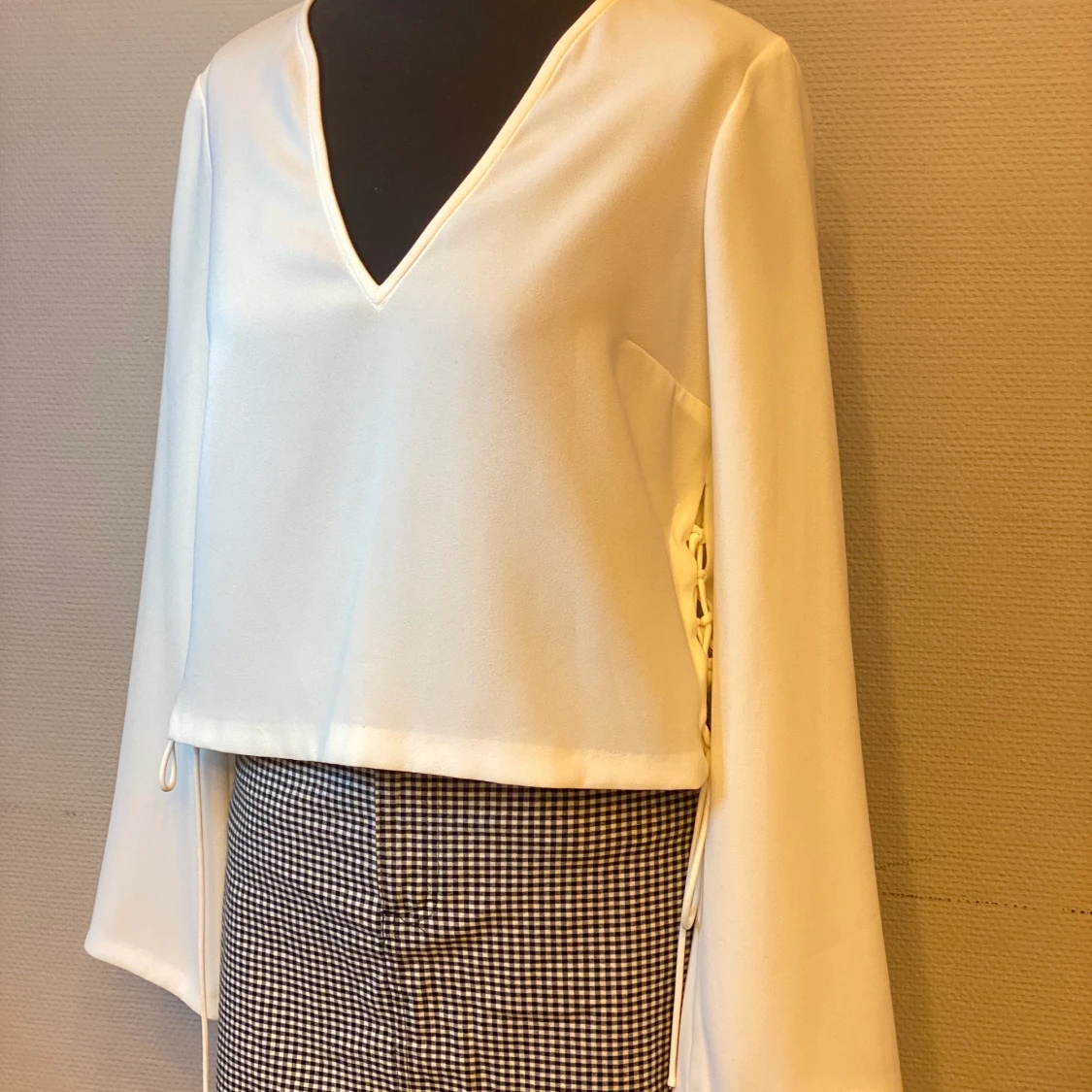 Vit blus från zara med snygga detaljer! Sitter väldigt snyggt på! Säljer för att jag endast använt den en gång! Frakt tillkommer-kan också mötas i sthlm!