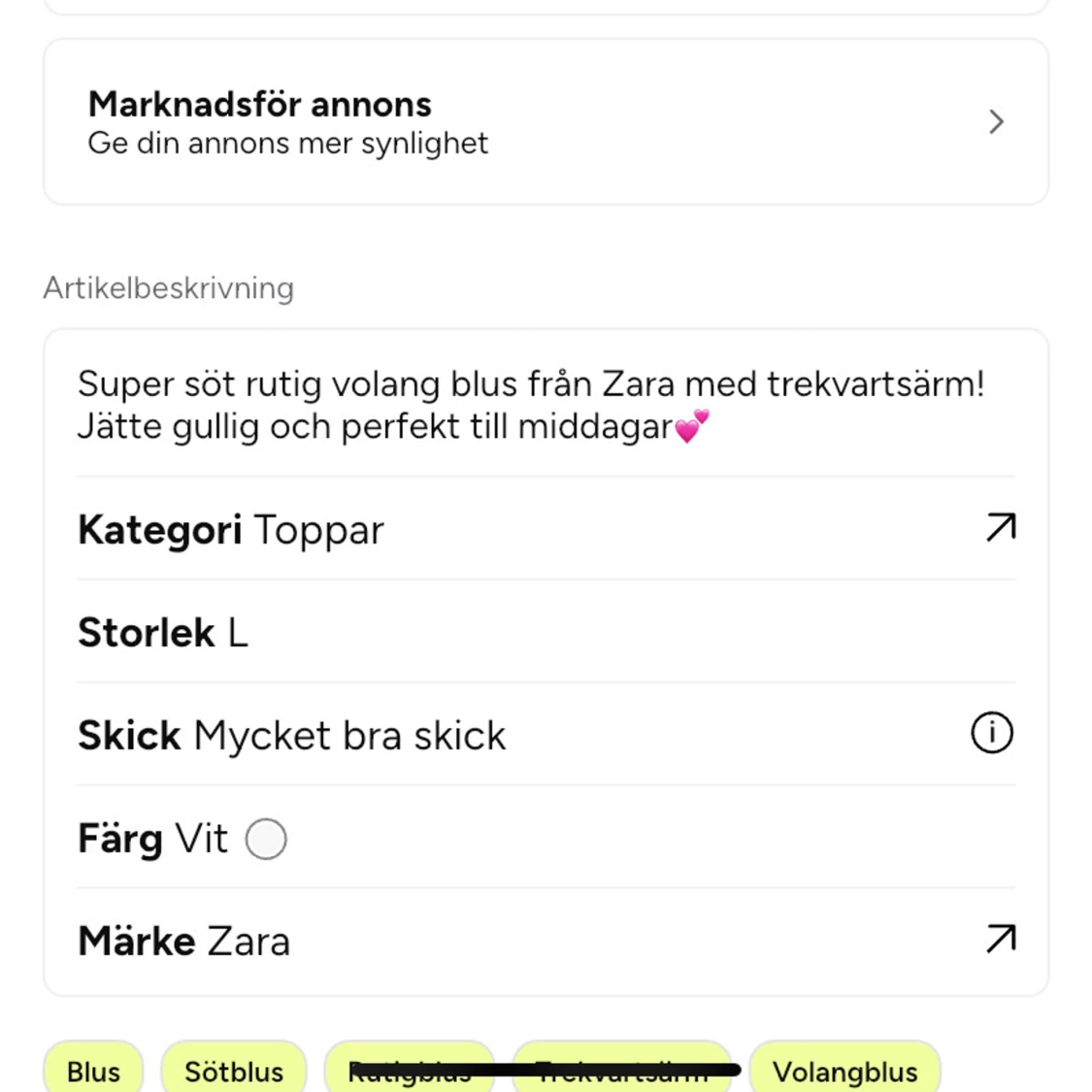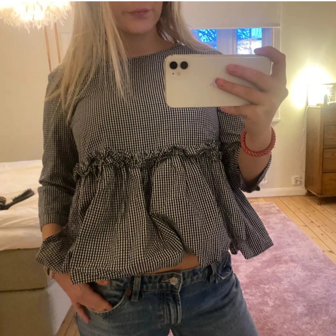 Jätte söt rutig volang blus från Zara med trekvartsärm! Jätte gullig och perfekt till middagar💕