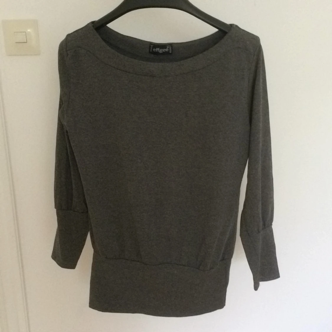 Grå tröja. Fint skick, inga noppor. Tajt över höften, lösare kring midjan. Tar swish, köparen står för frakten.