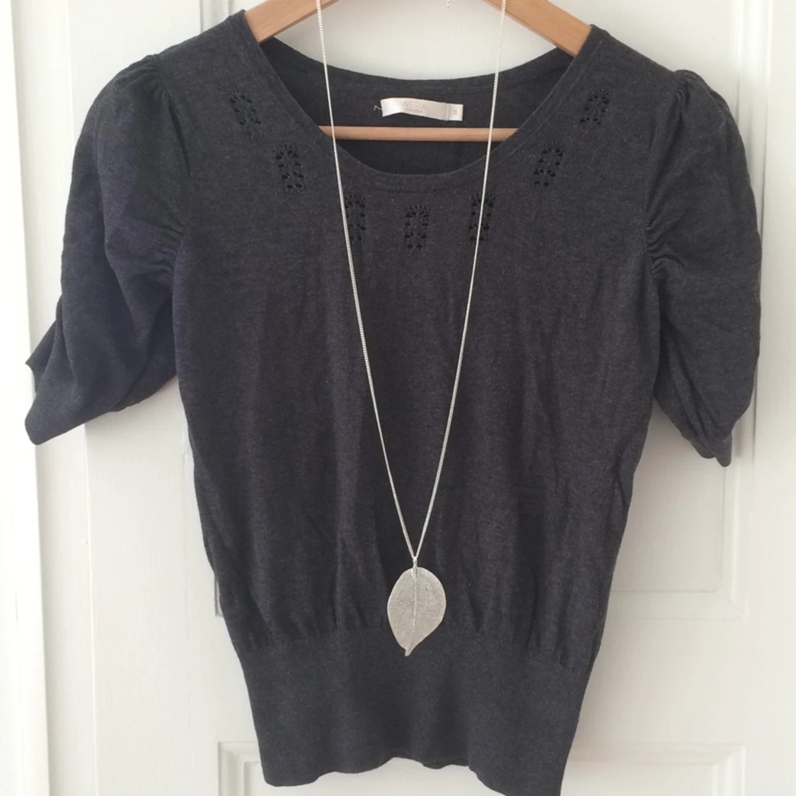 Mycket söt kort grå topp ifrån Wera med puffärm. Markerar midjan på ett mycket fint sätt. Frakt tillkommer, har swish. Halsband ingår ej.