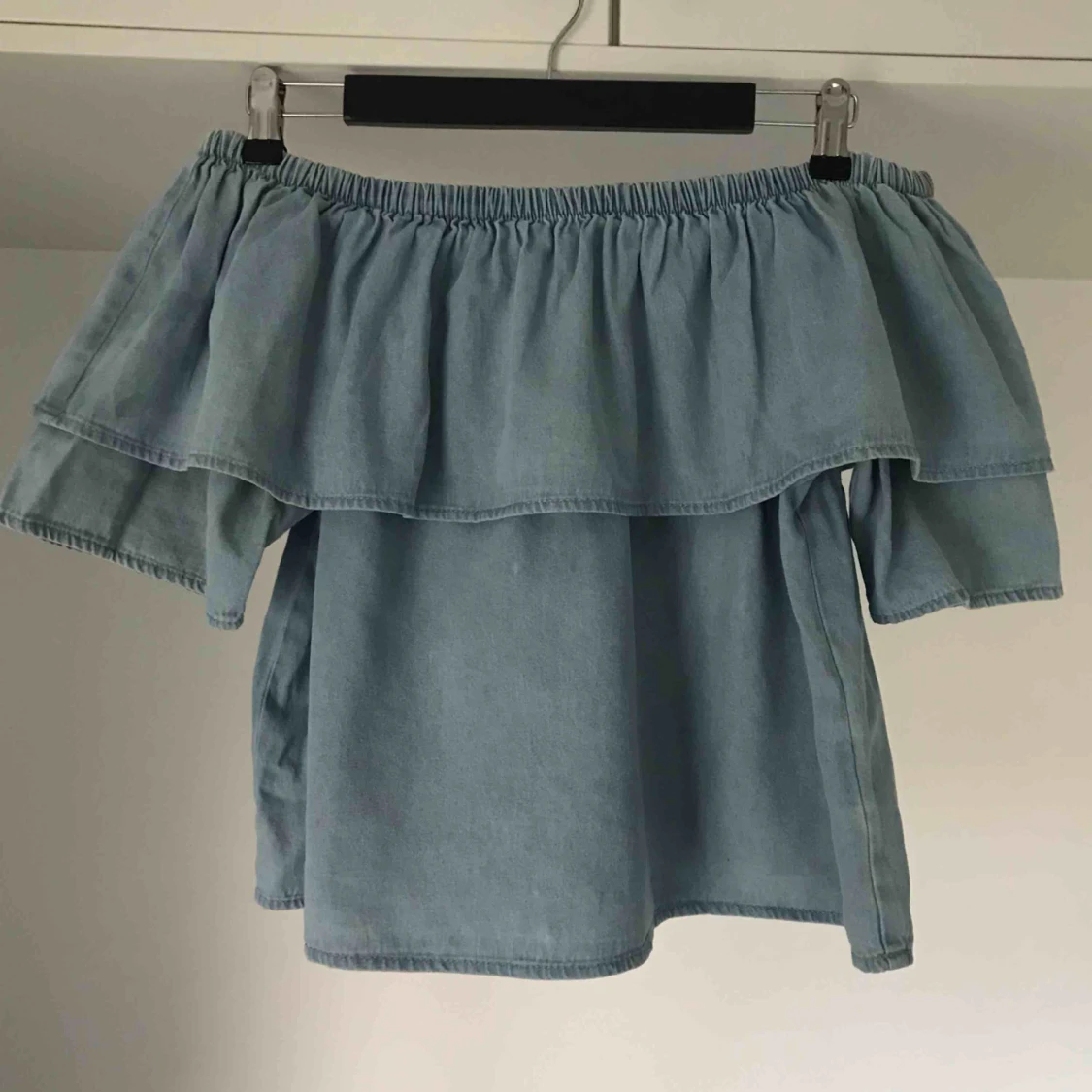 Off-shoulder blus i jeanstyg