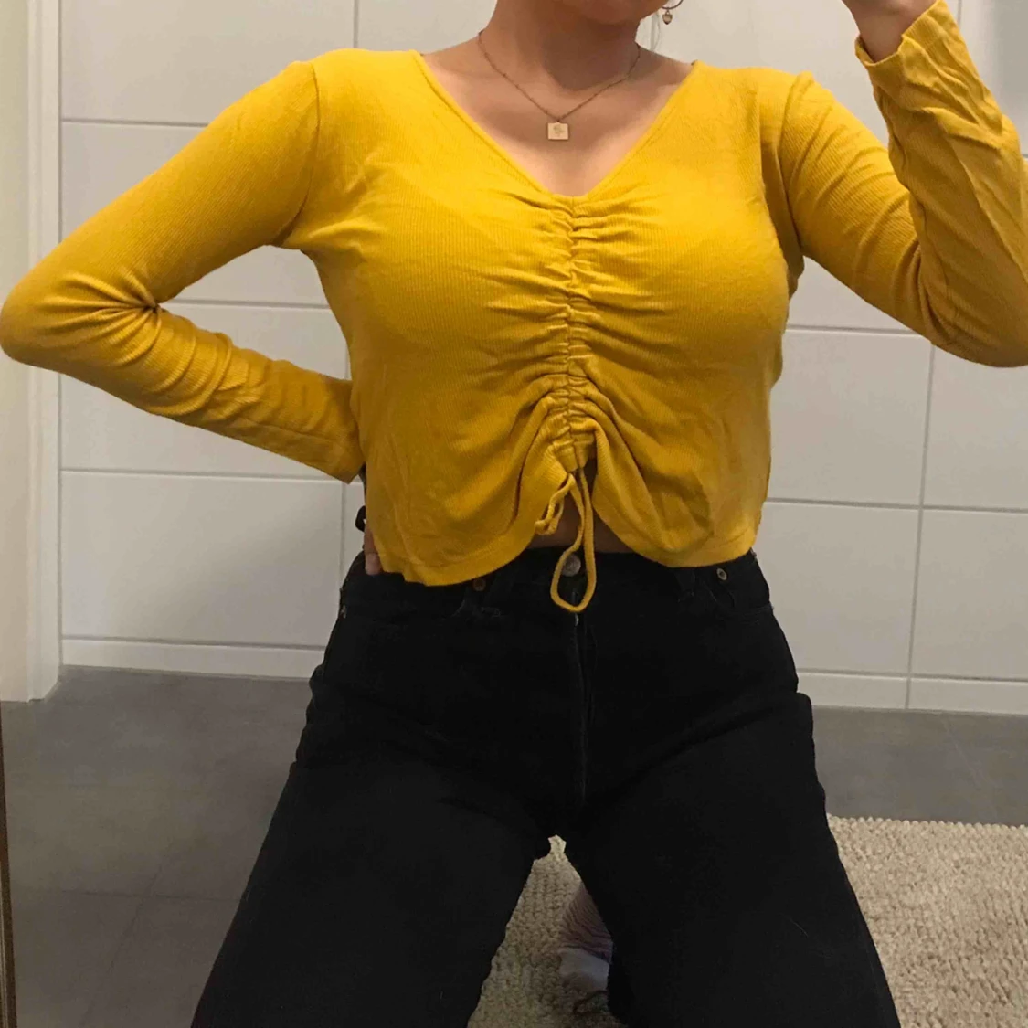 jättefin gul blus som inte används längre. justerbar med band. ribbad. frakt tillkommer