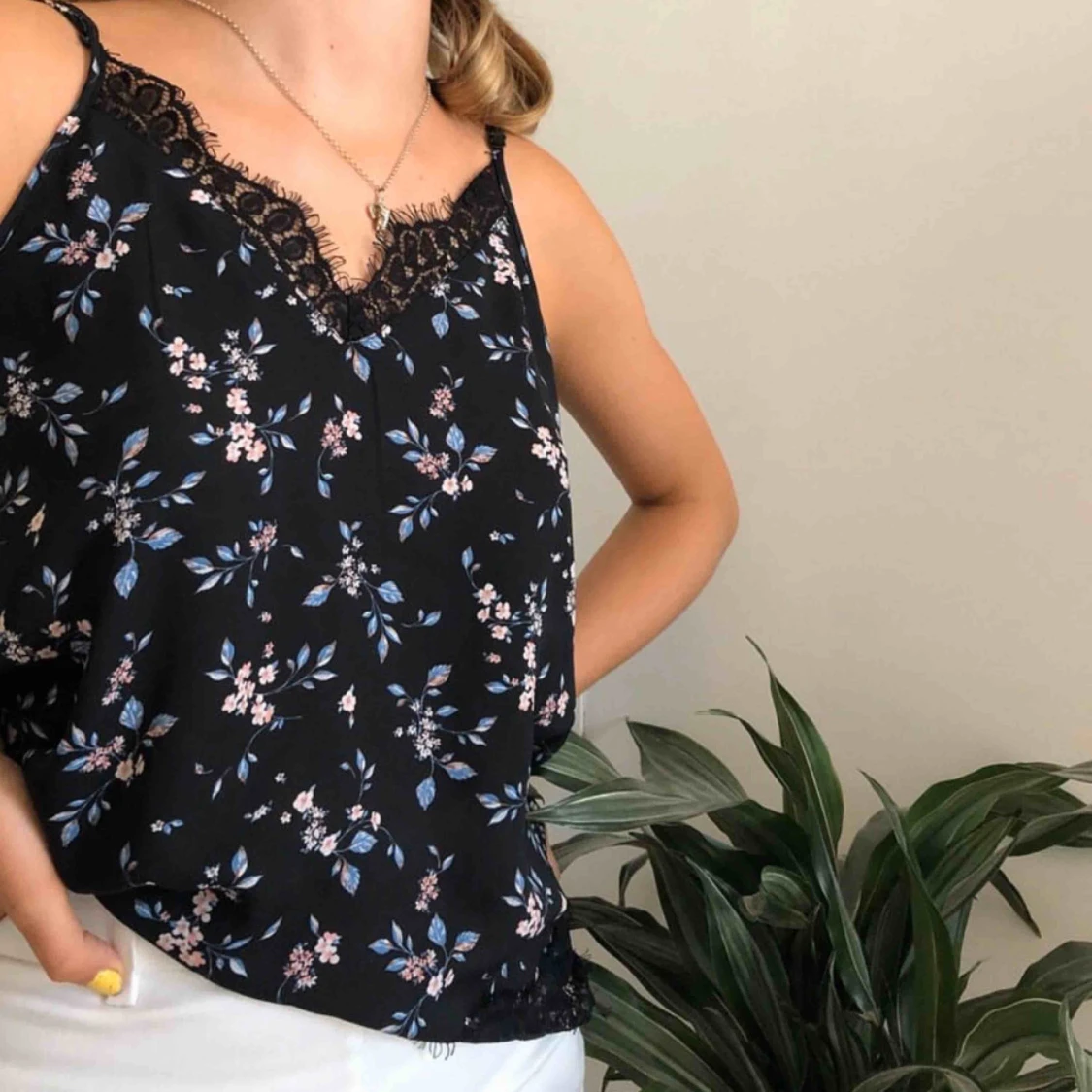Svart fin blommig blus med spetsdetaljer Passar alla storlekar. 25kr